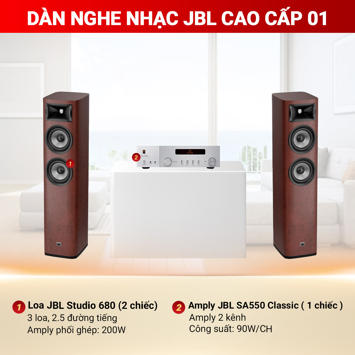 Cấu hình Dàn nghe nhạc JBL cao cấp 01 gồm: