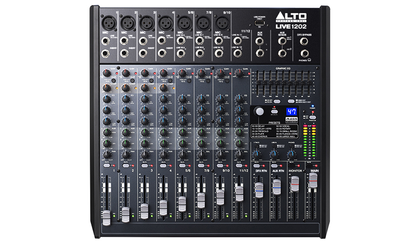 >>Mixer Alto Live 1202 là máy trộn 2 bus 12 kênh chuyên nghiệp được trang bị các công cụ bạn cần để tạo ra bản phối hoàn hảo.