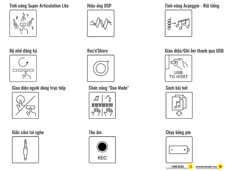 - USB TO HOST (MIDI/AUDIO): kết nối máy tính, laptop hoặc điện thoại để thu âm, điều khiển hoặc học online.