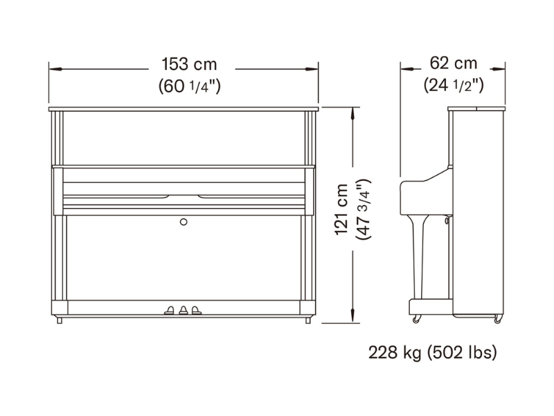 Yamaha U1 sở hữu kích thước được đánh giá là chuẩn mực trong phân khúc upright piano, vừa tối ưu không gian vừa đảm bảo hiệu suất âm thanh mạnh mẽ.