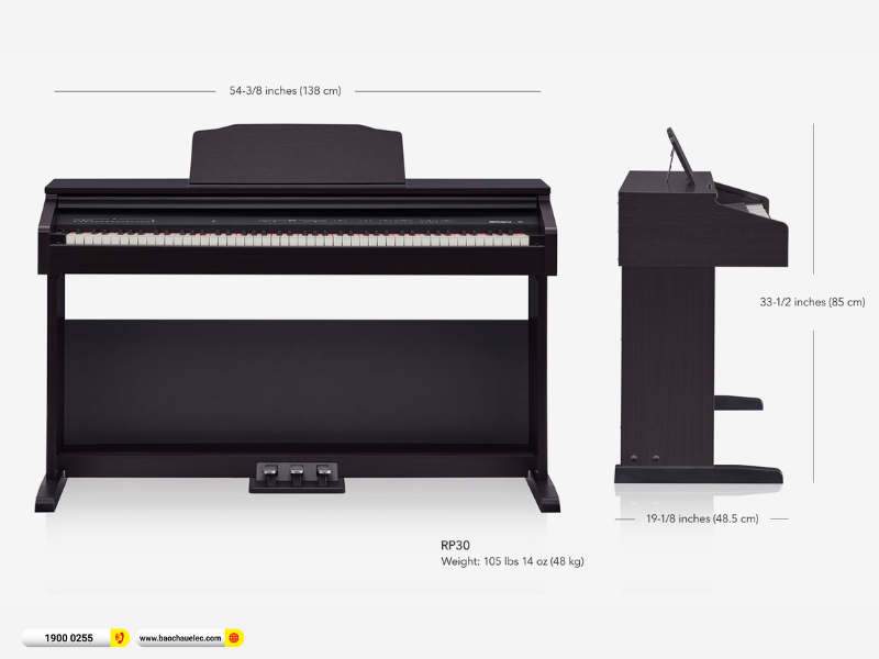Đàn Piano điện Roland RP-30 mang kiểu dáng piano upright truyền thống, gọn gàng và sang trọng, giúp tôn lên vẻ thẩm mỹ của bất kỳ không gian nào. Với trọng lượng chỉ 48 kg nhẹ hơn đáng kể so với piano cơ và cây đàn rất dễ di chuyển và lắp đặt trong phòng khách, lớp học hay phòng thu nhỏ.