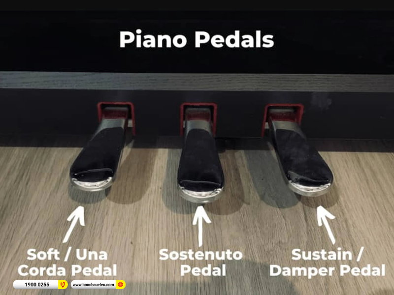 Khác với các mẫu đàn điện giá rẻ sử dụng pedal rời, Yamaha CLP-825 có hệ thống 3 pedal liền thân, gồm: Damper (chặn tiếng), Sostenuto và Soft - mô phỏng chính xác pedal trên đàn đại dương cầm. Đặc biệt, pedal Damper hỗ trợ chức năng nửa pedal, giúp kiểm soát độ ngân vang tinh tế hơn, tăng chiều sâu biểu cảm khi chơi.