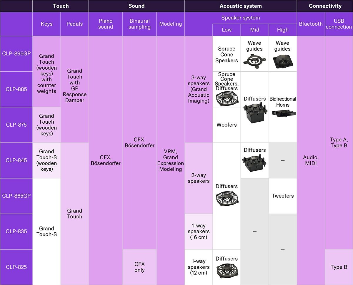 Đàn Piano Yamaha CLP-875 được Yamaha ra mắt với 6 phiên bản màu sắc cao cấp, bao gồm:
