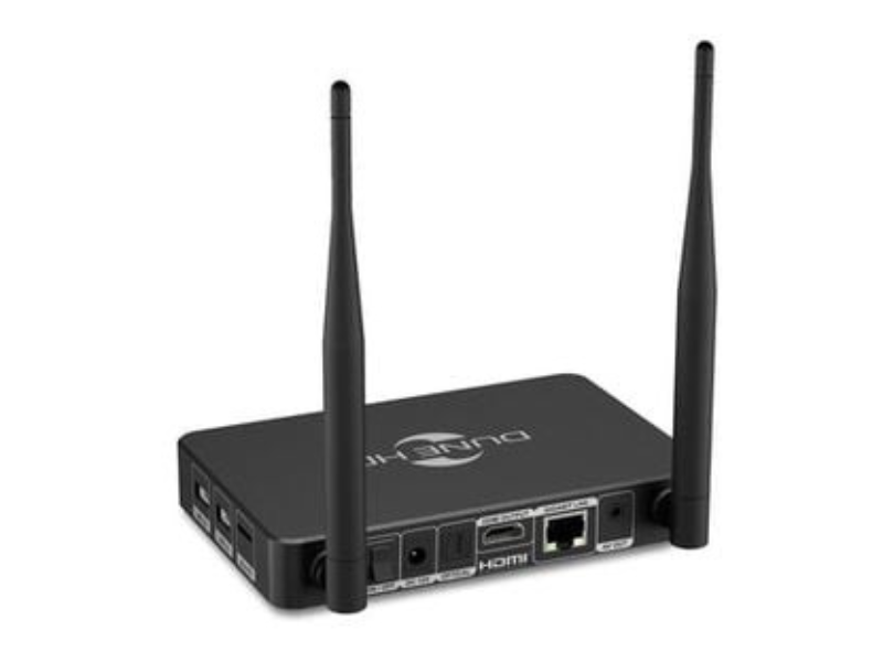 Hai anten WiFi 2T2R được bố trí sau máy, tối ưu cường độ tín hiệu và độ phủ sóng. Mặt trước trang bị màn hình LED hiển thị thông số hoạt động rõ ràng, thuận tiện cho việc theo dõi trạng thái và thời lượng phát phim. Hệ thống cổng kết nối được sắp xếp khoa học, giúp thao tác cắm rút nhanh, hỗ trợ lắp đặt gọn gàng trong bất kỳ hệ thống giải trí nào.