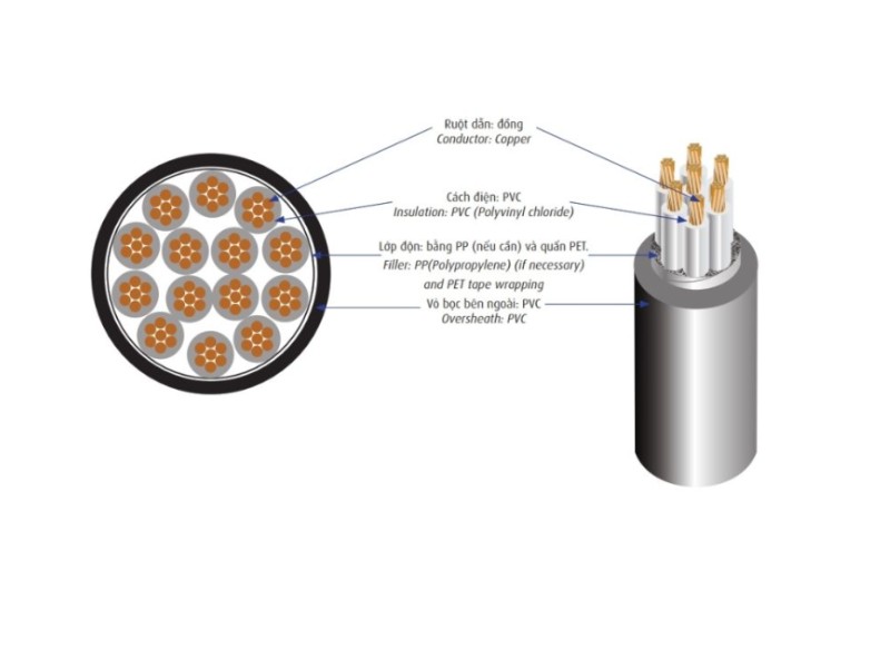 - Lớp cách điện PVC: Có khả năng cách điện tốt, chịu nhiệt lên đến 70°C, đảm bảo an toàn trong quá trình vận hành.