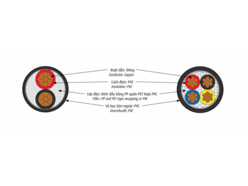 - Gồm các lớp nhựa PVC chất lượng cao bao bọc bên ngoài ruột dẫn.