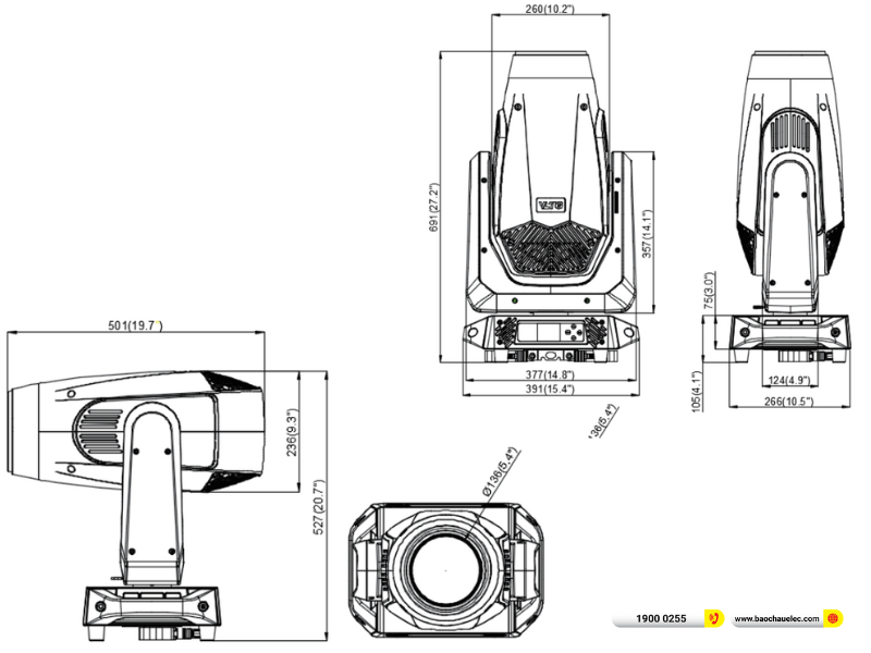 Đèn Moving Head VLTG TV-FE500 là mẫu hybrid moving head LED 450W hội tụ đầy đủ các yếu tố: sáng mạnh, linh hoạt, vận hành êm và điều khiển hiện đại cùng thiết kế gọn nhẹ. Đây là giải pháp ánh sáng toàn diện cho các đơn vị tổ chức sự kiện, sân khấu và dự án ánh sáng chuyên nghiệp cần hiệu suất cao và độ ổn định lâu dài. Nhấc máy liên hệ hotline 1900 0255 hoặc ghé qua hệ thống cửa hàng Showroom Bảo Châu Elec gần bạn nhất để trải nghiệm trực tiếp chất lượng sản phẩm!