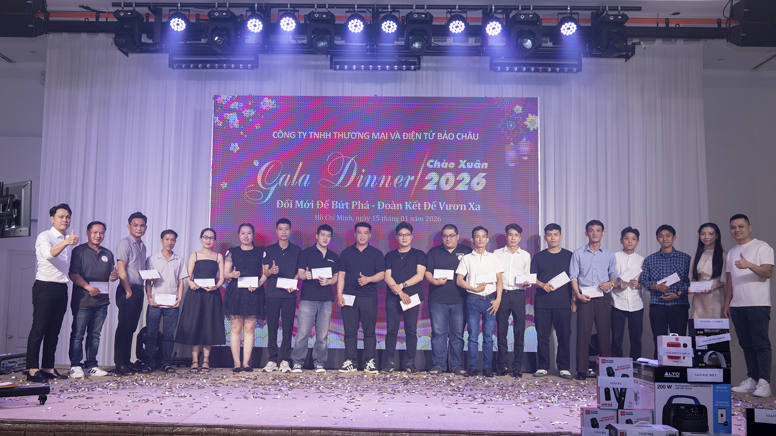 Buổi Gala Dinner là dịp để Bảo Châu Elec tổng kết hành trình phát triển với nhiều dấu ấn nổi bật, từ việc mở rộng hệ thống, nâng cao chất lượng dịch vụ đến việc khẳng định uy tín thương hiệu trên thị trường thiết bị âm thanh. Những kết quả đạt được là minh chứng rõ nét cho tinh thần đoàn kết, sự cống hiến và nỗ lực bền bỉ của toàn thể cán bộ nhân viên trong suốt năm qua.