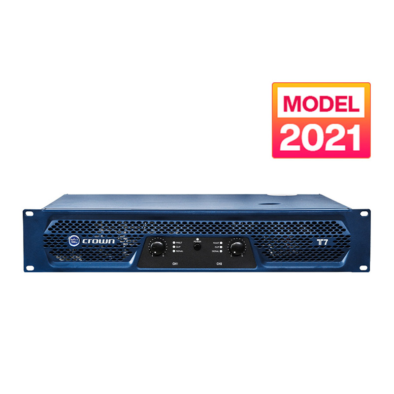 Là dòng cục đẩy 2 kênh, cục đẩy Crown T7 sở hữu công suất 8Ω - 2 x 675W, 4Ω - 2 x 1000W, 8Ω - 2000W.