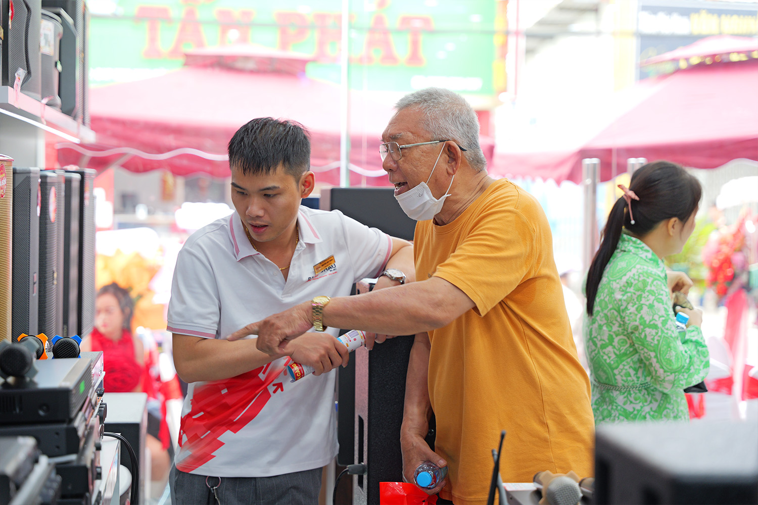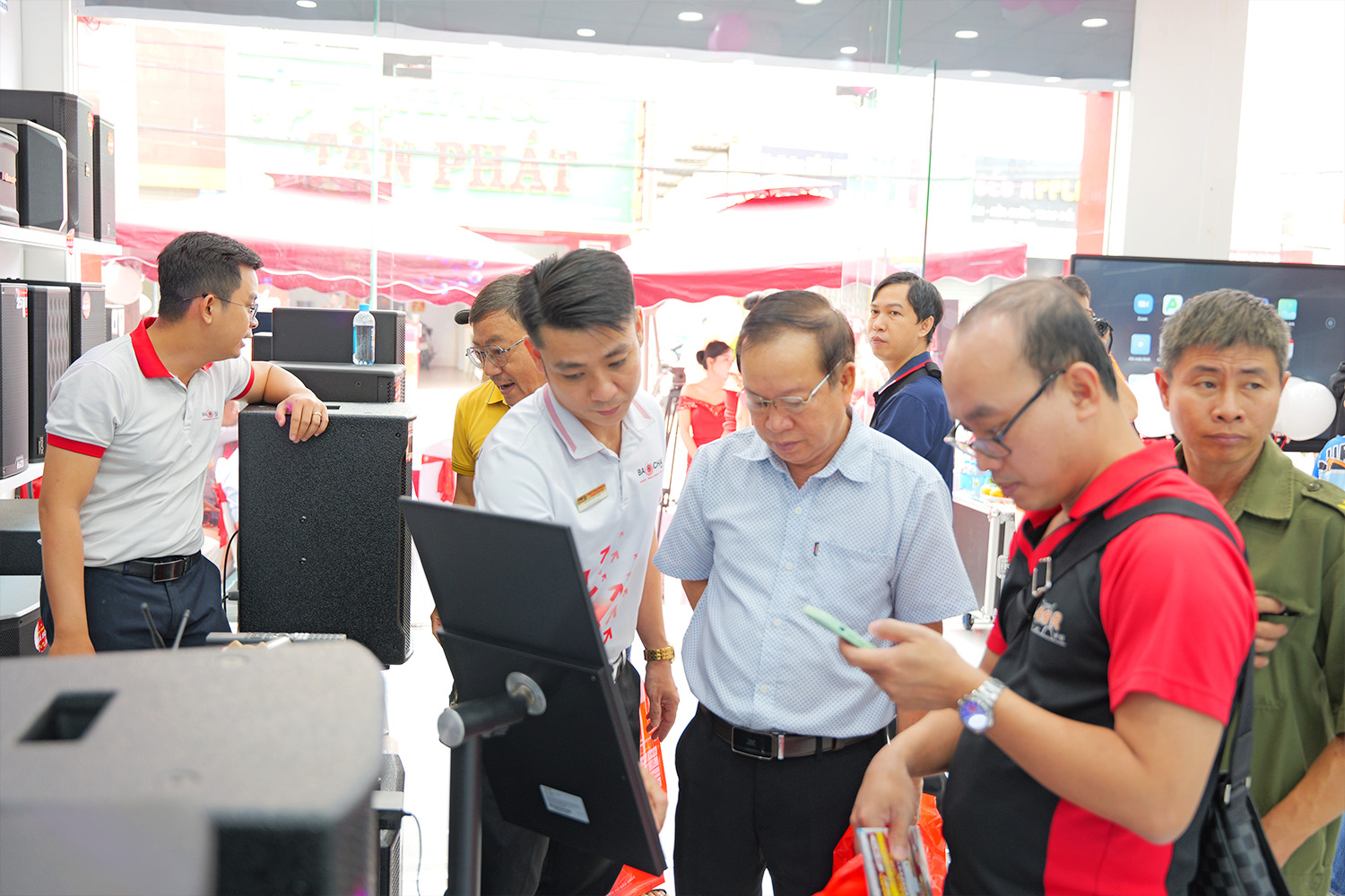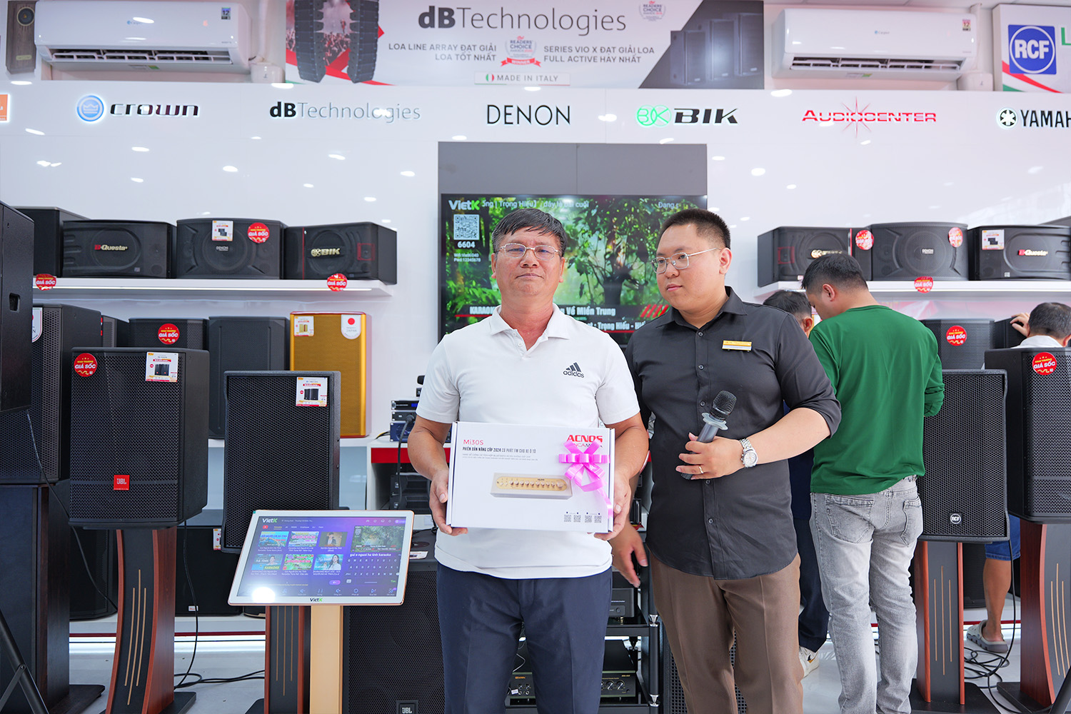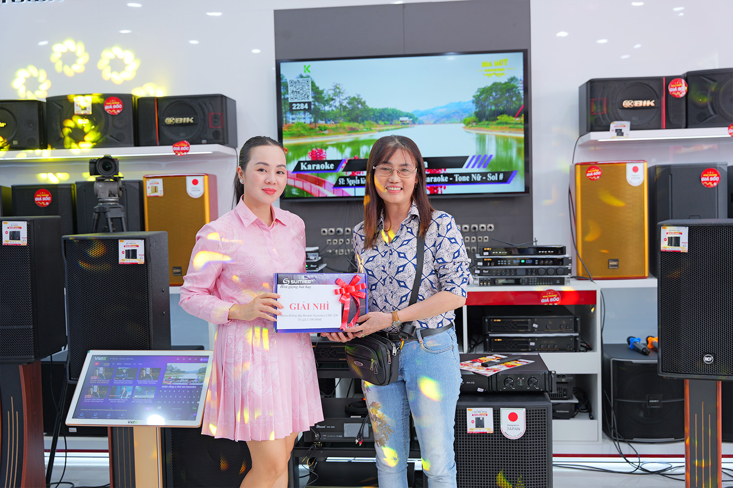 Phòng nghe thử được đầu tư cách âm tốt, trang bị hệ thống demo loa và micro chuyên dụng, mang đến trải nghiệm thực tế với chất âm trung thực, độ vọng thấp trong môi trường yên tĩnh. Ngoài ra, showroom còn được trang bị đầy đủ thiết bị phụ trợ như hệ thống ánh sáng demo, amply karaoke, mixer, micro thử cùng hệ thống điện ổn định, đảm bảo cho khách hàng những trải nghiệm tối ưu.