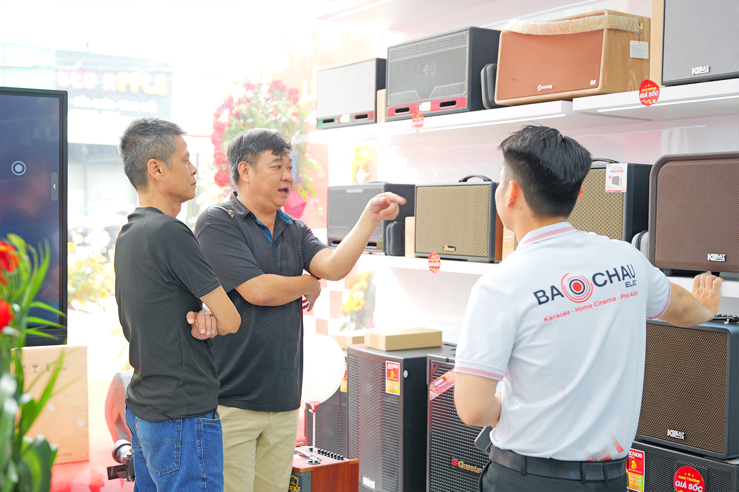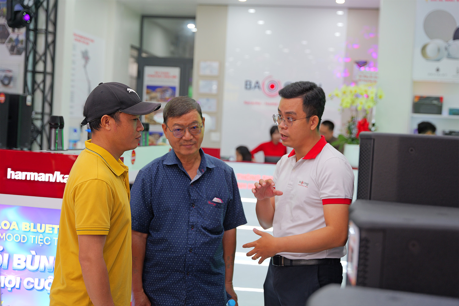 Đội ngũ tư vấn với nhiều năm kinh nghiệm trong lĩnh vực âm thanh, hiểu rõ đặc tính kỹ thuật của loa, ampli, micro, thiết bị ánh sáng,… có thể tư vấn phù hợp với nhu cầu (gia đình, quán cafe, sân khấu, hội trường…). Tư vấn viên thân thiện, nhiệt tình, biết lắng nghe khách hàng.
