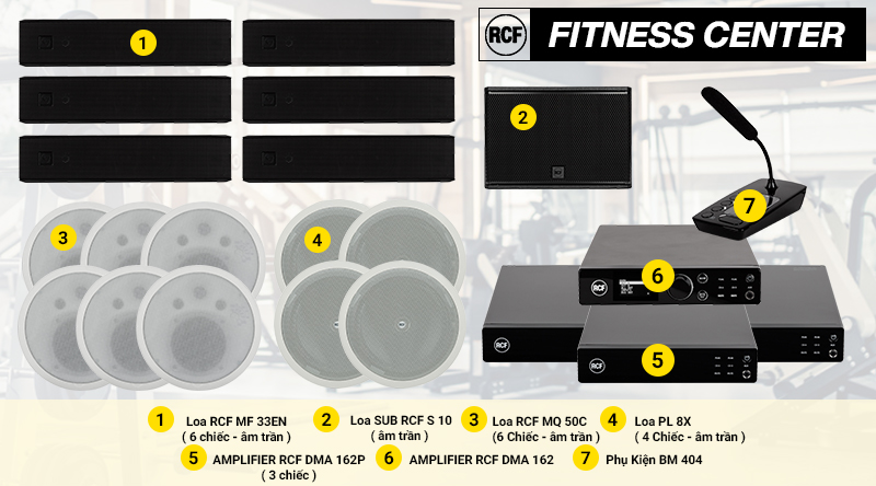 Hệ thống âm thanh nhạc nền RCF cao cấp phòng thể dục, gym, yoga được Bảo Châu Elec phân phối chính hãng giá tốt với nhiều ưu đãi hấp dẫn. Liên hệ hotline 1900 0255 để được tư vấn, hỗ trợ chi tiết nhất về sản phẩm.
