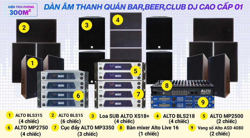 Cấu hình chi tiết của hệ thống âm thanh quán bar, beer, Club DJ cao cấp 01