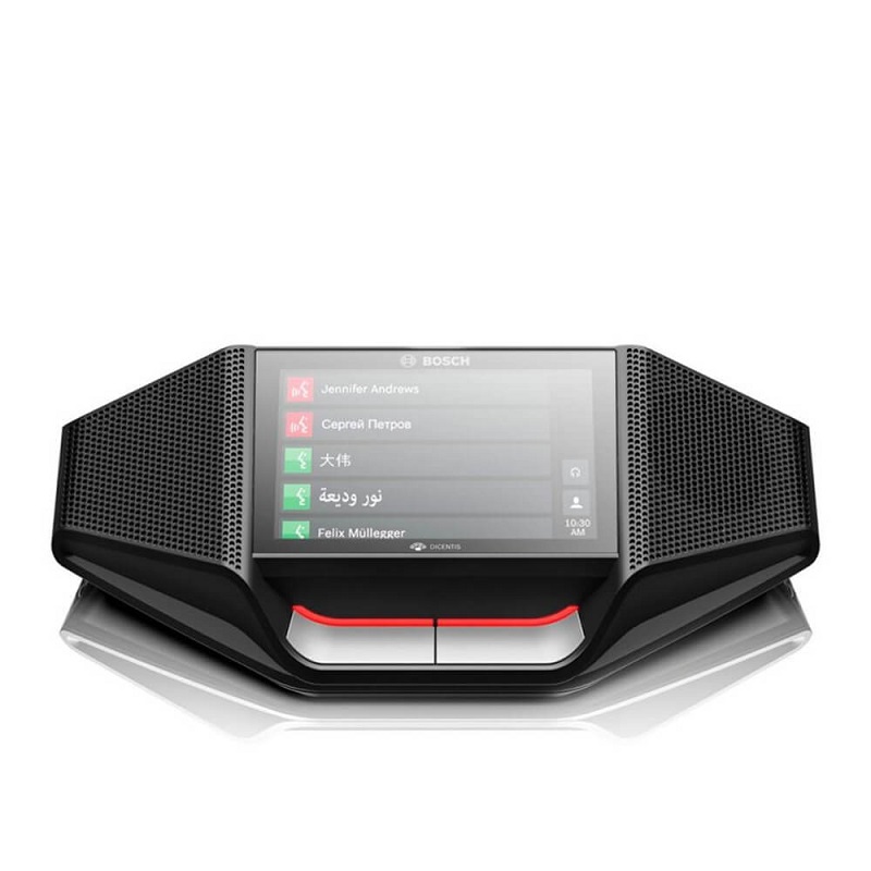 Màn hình cảm ứng LCD cũng sẽ hiển thị danh sách logo tùy chỉnh, Người phát biểu và danh sách Yêu cầu Phát biểu, đồng thời có khả năng cho nhiều ngôn ngữ giao diện người dùng ở dạng ký tự gốc và thậm chí sẽ hiển thị logo công ty của bạn.