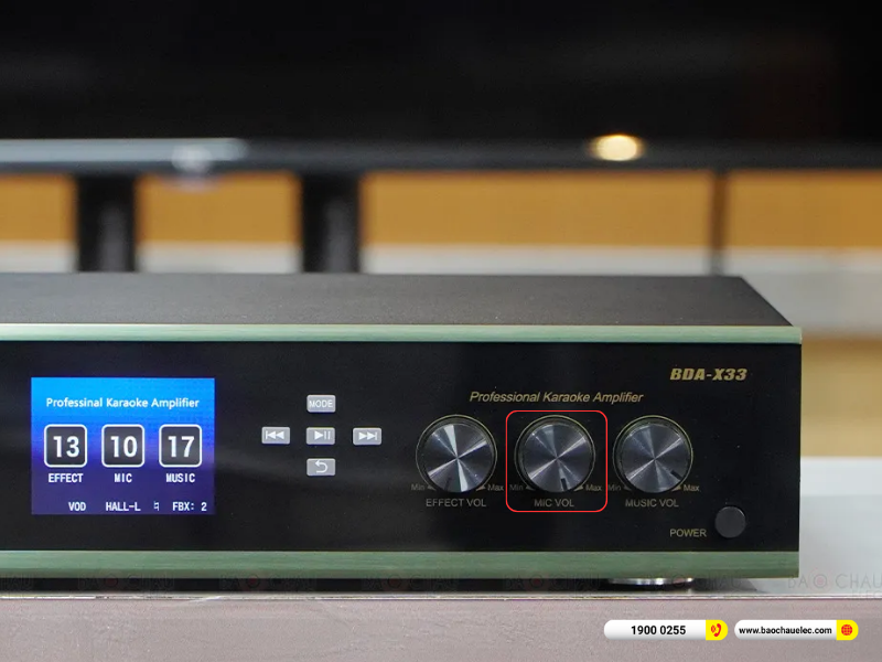 Micro là kênh quyết định độ rõ giọng, nên chỉnh từng tham số từ nhỏ tới lớn. Bắt đầu với MIC VOL (Volume): nói nhẹ vào micro, tăng dần đến khi tiếng nói vừa đủ nghe ở phòng (không vỡ, không rè).