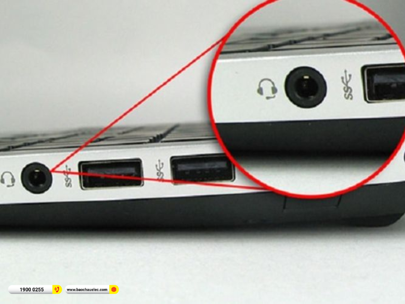 Bước 2: Cắm jack 3.5mm vào cổng tai nghe trên laptop (thường có ký hiệu hình tai nghe, màu xanh lá).
