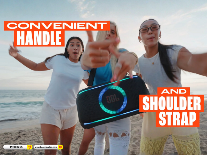 Dù có kích thước lớn hơn dòng Encore, JBL PartyBox On The Go 2 vẫn có thể giữ được sự linh hoạt nhờ thiết kế nhỏ gọn, tay cầm tiện lợi và dây đeo chắc chắn. Bạn có thể dễ dàng mang theo loa đến bất kỳ đâu từ sân vườn, hồ bơi cho đến bãi biển, sẵn sàng “quẩy” mọi lúc.