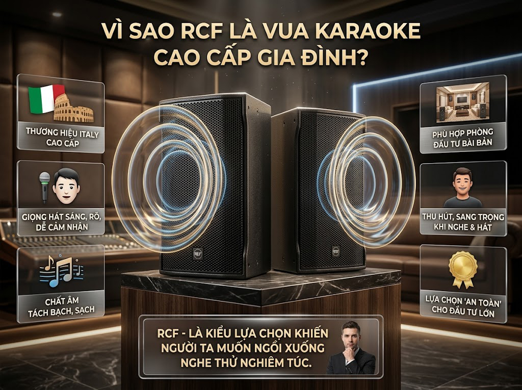 Khi đẩy nhu cầu lên cao hơn, đặc biệt là với những phòng karaoke gia đình đầu tư kỹ, không gian lớn hơn, cấu hình đồng bộ hơn và người nghe có yêu cầu cao hơn về chất âm, RCF lại trở thành một cái tên rất đáng chú ý. Đây không còn là lựa chọn chỉ để “nghe quen tên”, mà là kiểu lựa chọn khiến người ta muốn ngồi xuống nghe thử thật nghiêm túc.
