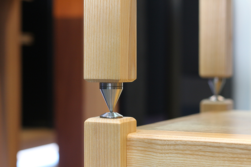 Thớt trên ghép với thớt dưới nhờ hệ thống chân đinh chén hứng đồng tầm nên tạo thành một khối thống nhất ngoài ra chân đinh chén hứng còn có tác dụng chống rung rất hiệu quả cho các thiết bị âm thanh nhất là đối với những thiết bị cần những mặt bằng tĩnh như thiết bị CD, hay các mâm đĩa than, v.v…