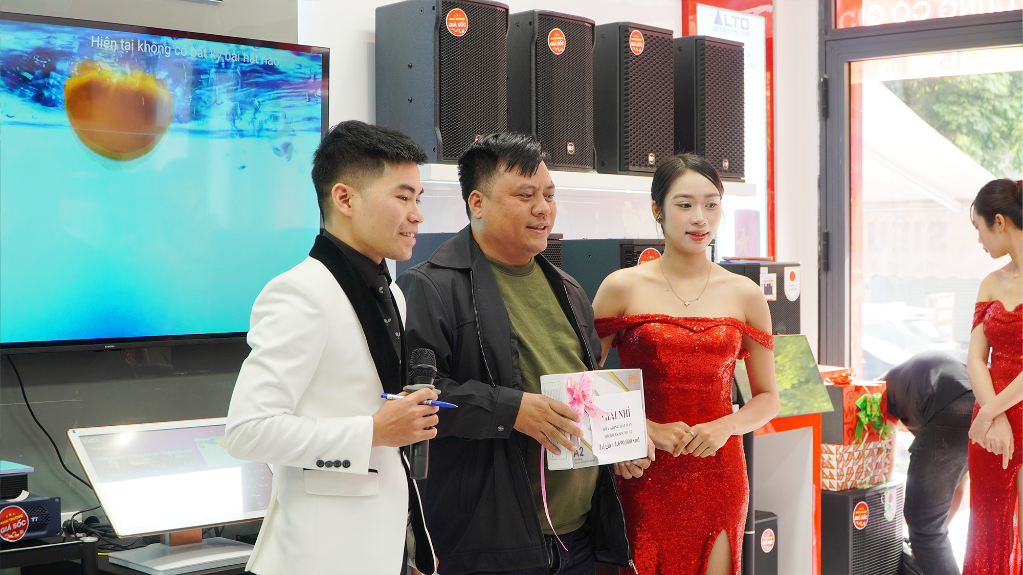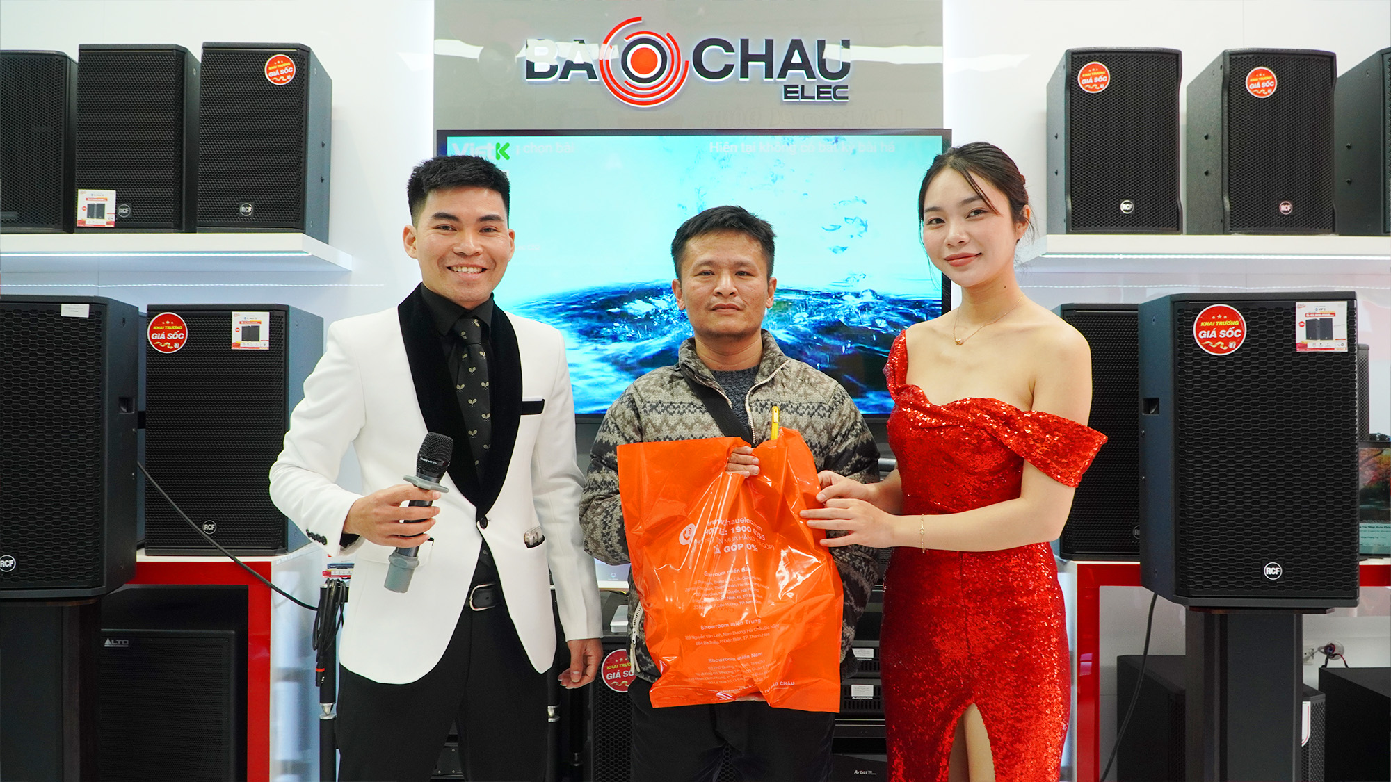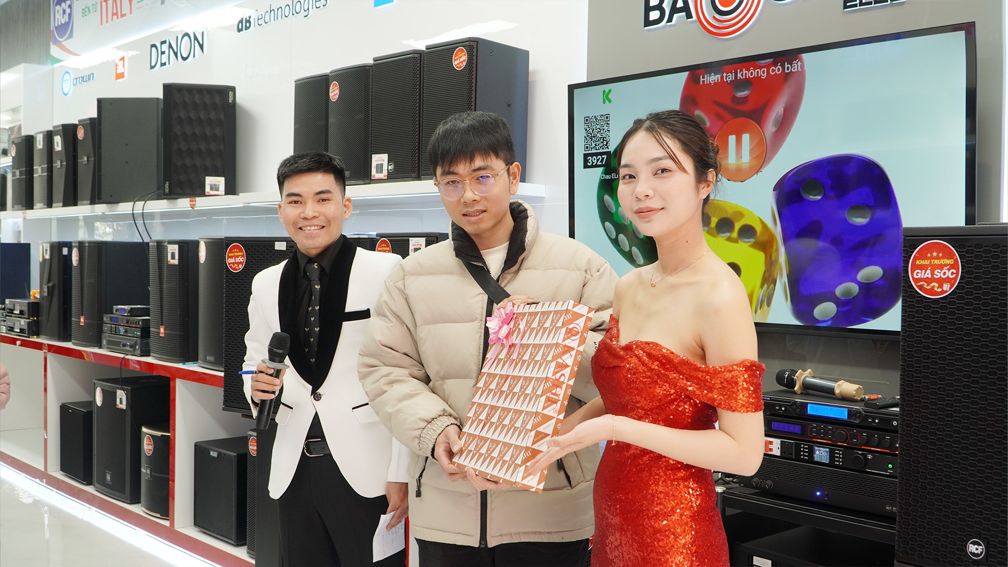 Điểm nhấn được mong chờ nhất trong ngày khai trương là chương trình bốc thăm trúng thưởng may mắn với tổng giá trị quà tặng lên tới 22 triệu đồng. Những phần quà giá trị như loa xách tay, loa kéo và micro không dây lần lượt tìm được chủ nhân trong sự vỡ òa niềm vui của khách hàng. Không khí háo hức, phấn khích lan tỏa khắp showroom, tạo nên những khoảnh khắc đáng nhớ.