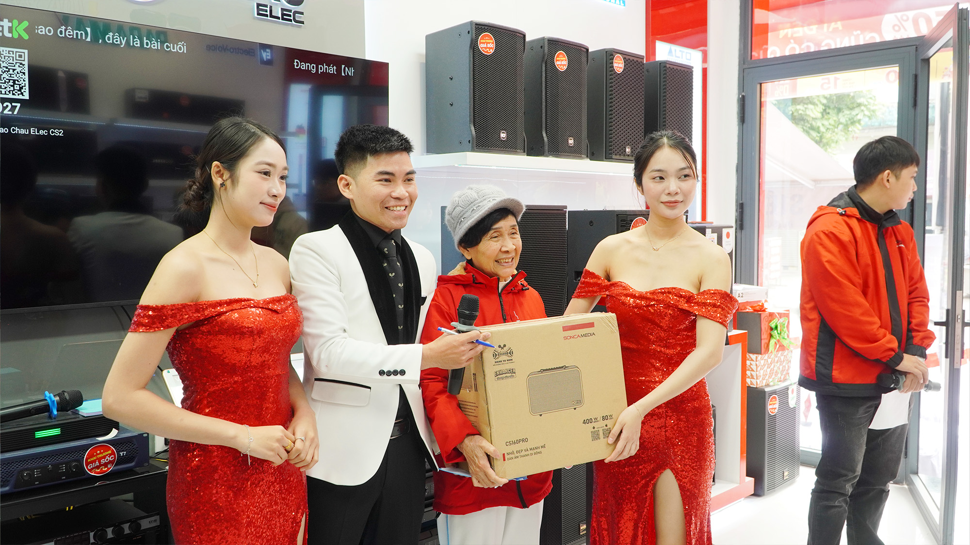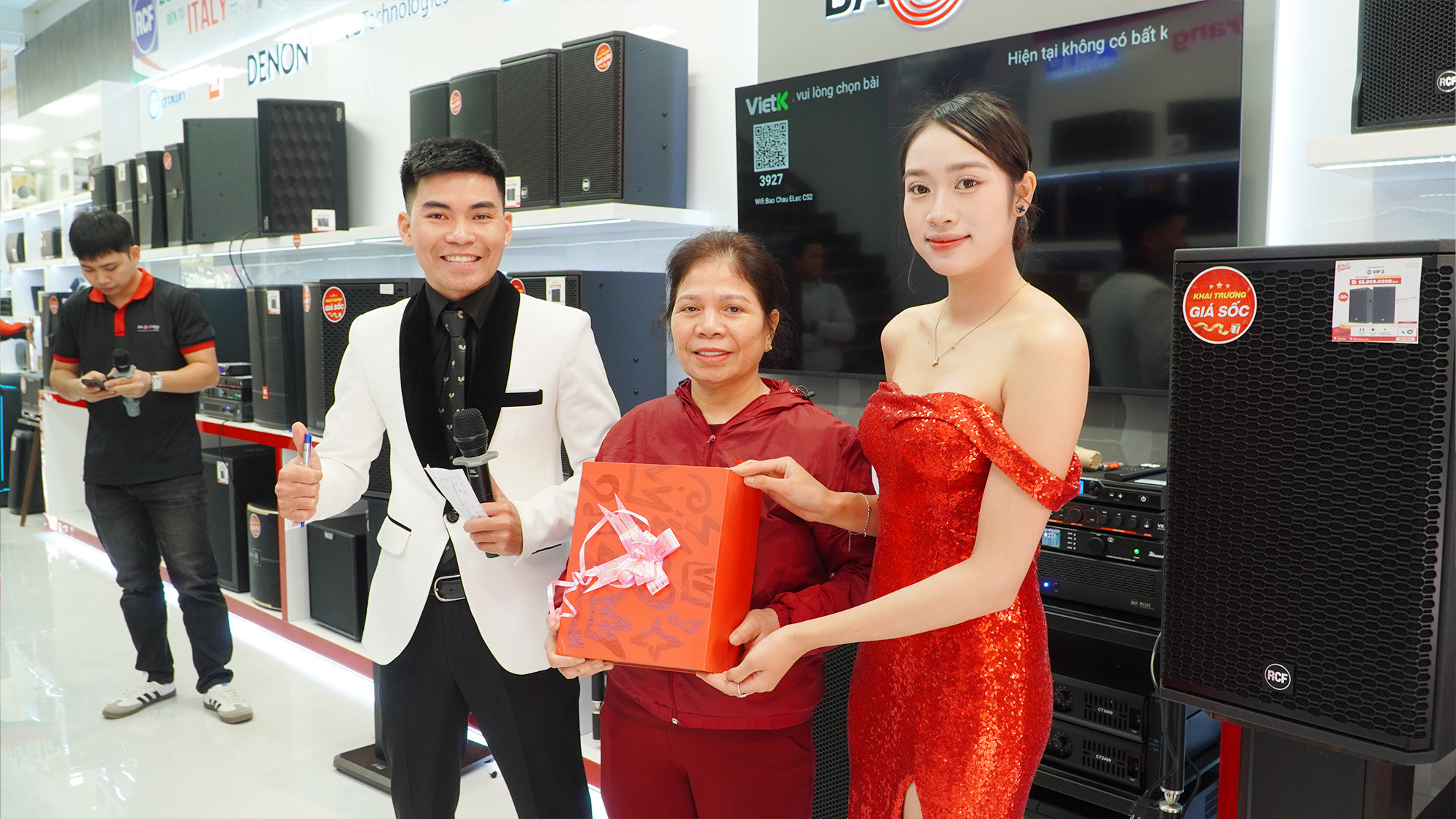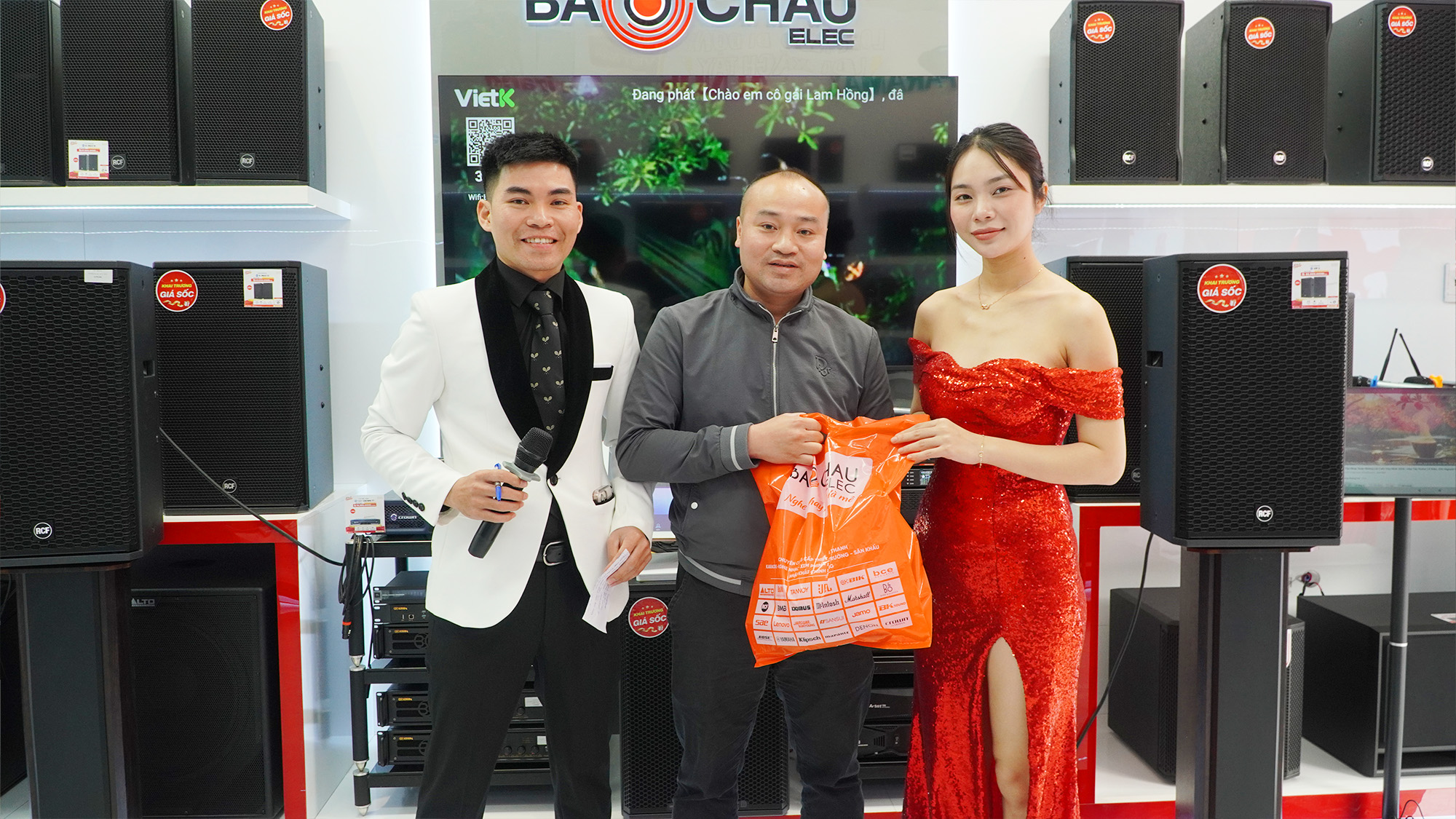 Điểm nhấn được mong chờ nhất trong ngày khai trương là chương trình bốc thăm trúng thưởng may mắn với tổng giá trị quà tặng lên tới 22 triệu đồng. Những phần quà giá trị như loa xách tay, loa kéo và micro không dây lần lượt tìm được chủ nhân trong sự vỡ òa niềm vui của khách hàng. Không khí háo hức, phấn khích lan tỏa khắp showroom, tạo nên những khoảnh khắc đáng nhớ.
