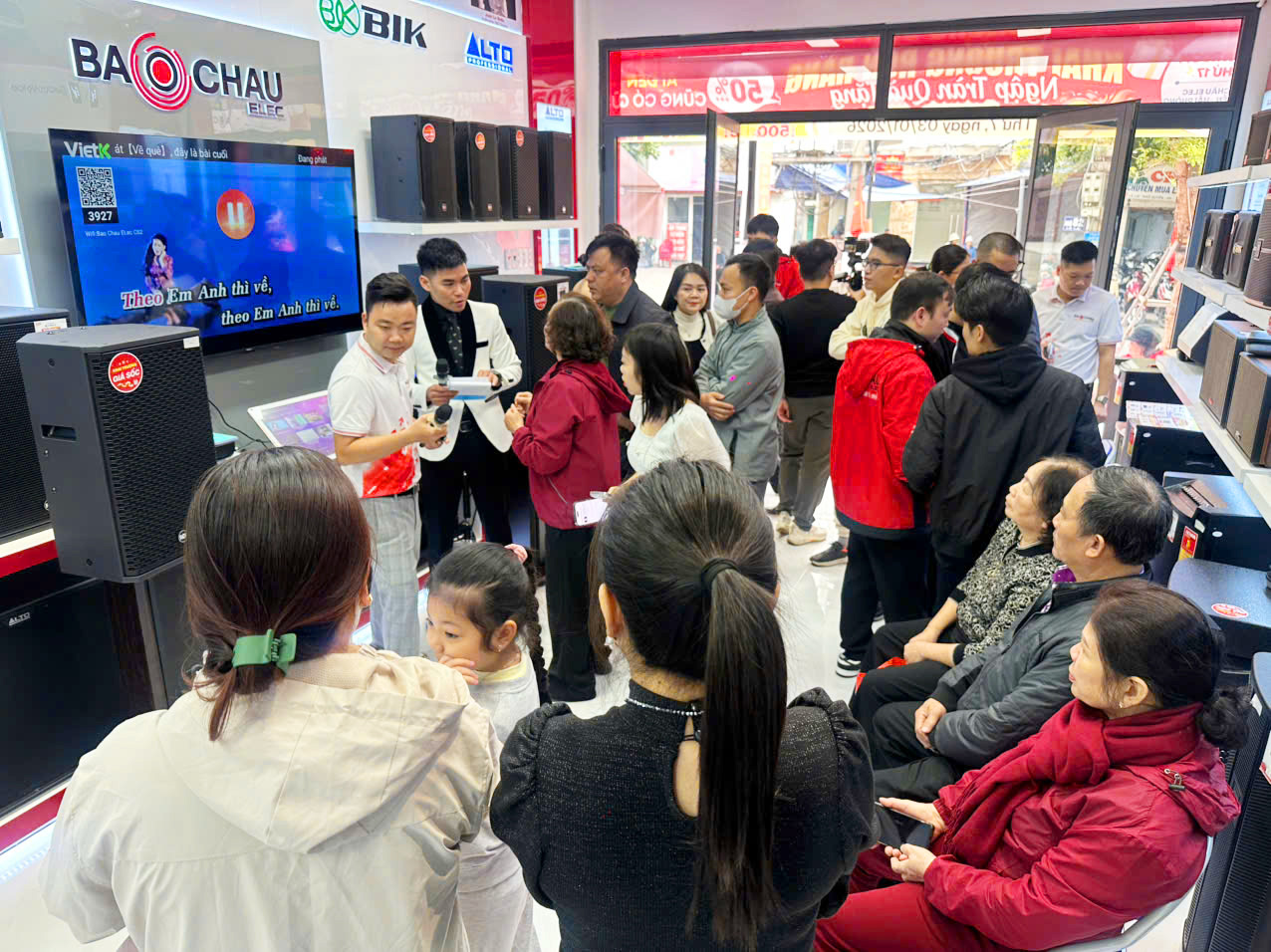 Tiếp nối chương trình là hoạt động “Hòa Giọng Hát Hay – Nhận Ngay Quà Lớn”, mang lại bầu không khí gần gũi và rộn ràng hơn bao giờ hết. Khách tham dự được trực tiếp thể hiện giọng ca của mình trên các dàn karaokedo đội ngũ kỹ thuật Bảo Châu Elec setup chuẩn chỉnh. Tiếng hát, tiếng vỗ tay và những tràng pháo tay cổ vũ đã khiến không gian sự kiện trở nên sôi động và tràn ngập cảm xúc.