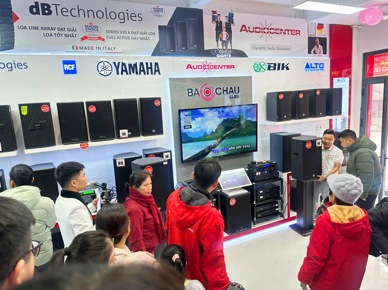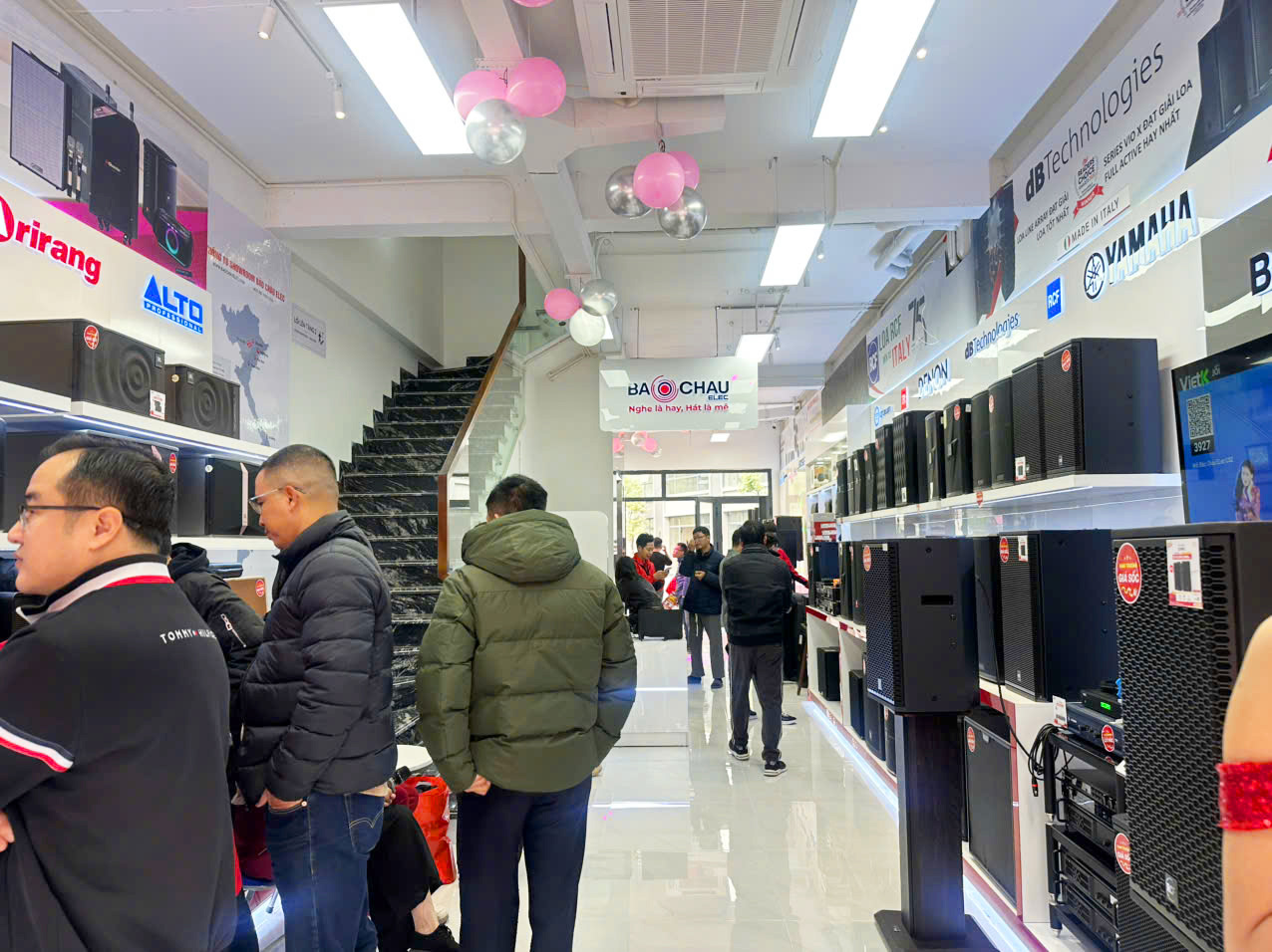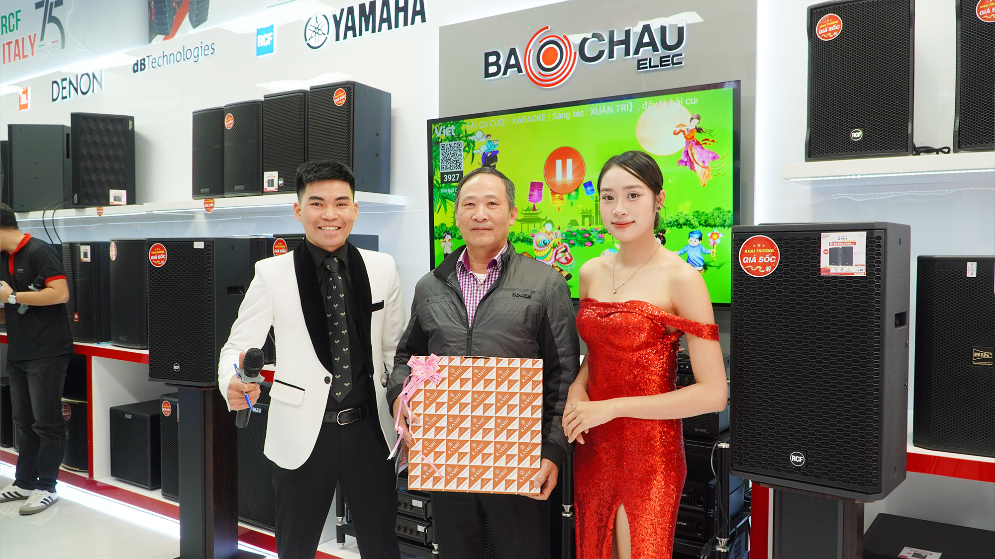 Song song với các hoạt động trên sân khấu, khách hàng còn được tham quan, trải nghiệm và mua sắm trực tiếp tại showroom Bảo Châu Elec Lê Lai. Không gian trưng bày hiện đại, đa dạng các giải pháp âm thanh từ karaoke gia đình, karaoke kinh doanh, âm thanh hội trường - sân khấu đến thiết bị nghe nhạc Hi-Fi, Hi-End đã nhận được sự quan tâm lớn.