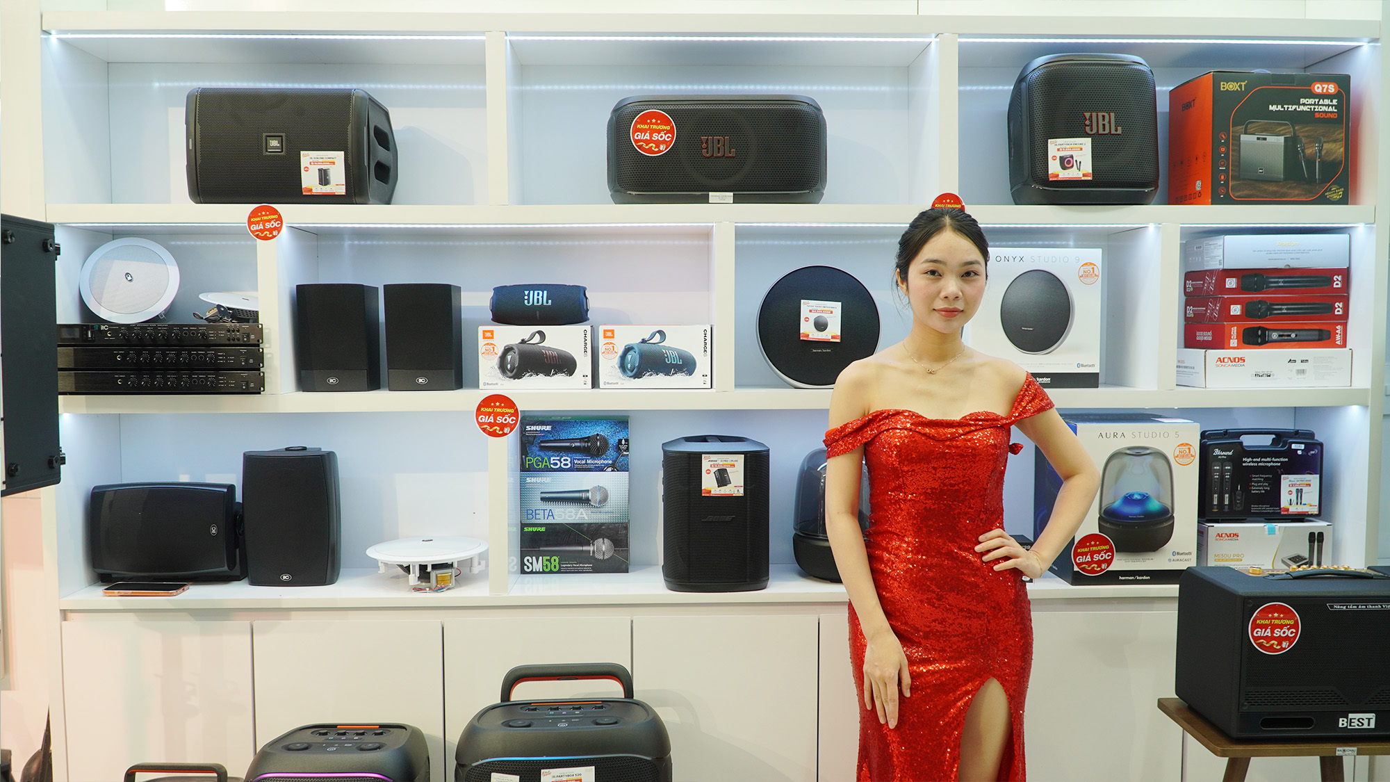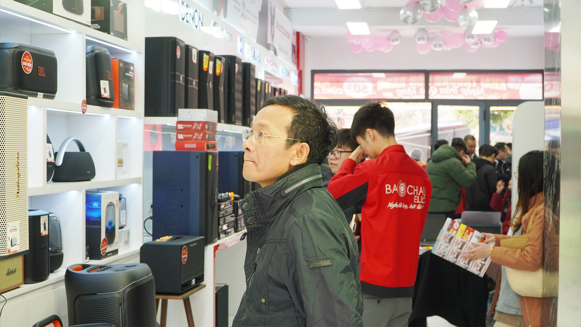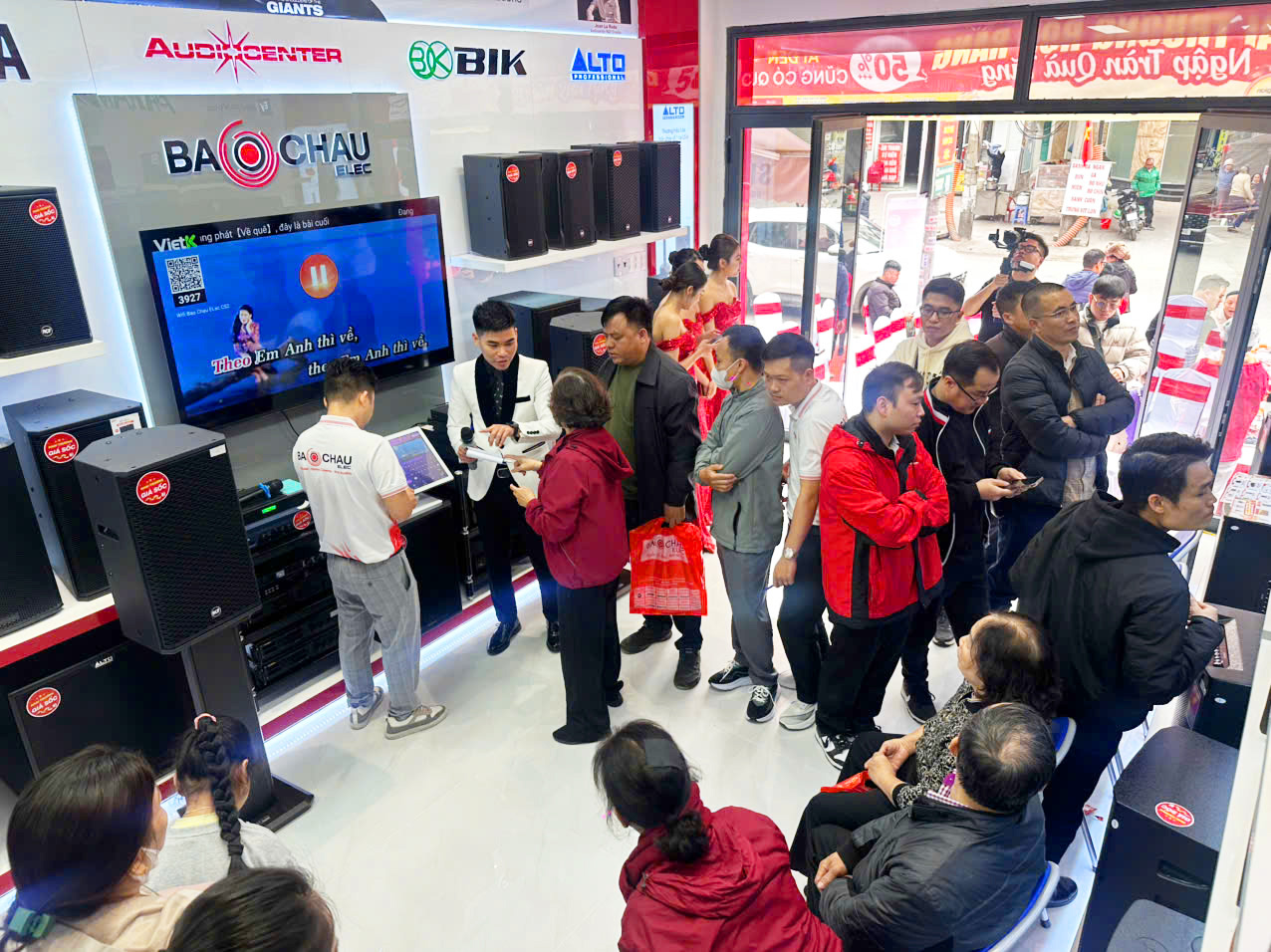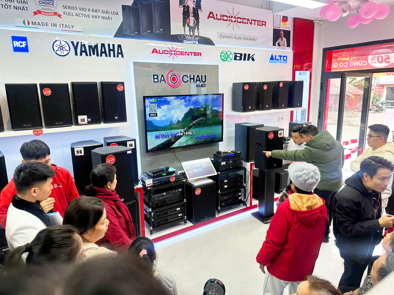 Song song với các hoạt động trên sân khấu, khách hàng còn được tham quan, trải nghiệm và mua sắm trực tiếp tại showroom Bảo Châu Elec Lê Lai. Không gian trưng bày hiện đại, đa dạng các giải pháp âm thanh từ karaoke gia đình, karaoke kinh doanh, âm thanh hội trường - sân khấu đến thiết bị nghe nhạc Hi-Fi, Hi-End đã nhận được sự quan tâm lớn.