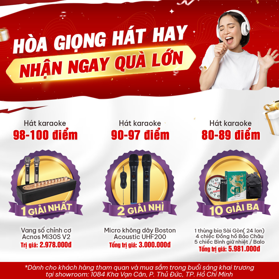 - 2 Giải Nhì (90 - 97 điểm): Mỗi giải 1 micro không dây Boston Acoustics UHF-200