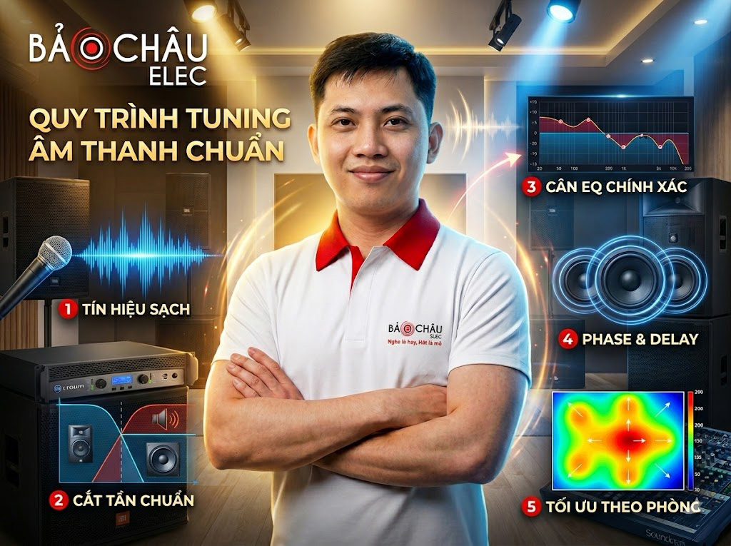 Với kinh nghiệm triển khai hàng nghìn hệ thống từ karaoke gia đình, nghe nhạc, xem phim đến sân khấu – sự kiện, Bảo Châu Elec không chỉ cung cấp thiết bị mà còn mang đến giải pháp tuning chuẩn, giúp mỗi bộ dàn phát huy đúng giá trị thực sự của nó. Đây chính là khác biệt giữa một bộ dàn “có tiếng” và một hệ thống âm thanh được cân chỉnh đúng nghĩa.