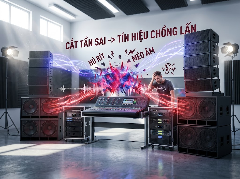 Đây là lỗi rất nhiều người gặp nhưng lại ít để ý. Trong một hệ thống có loa full và loa sub, nếu điểm cắt tần không hợp lý, hai dải sẽ chồng lấn hoặc bỏ trống.
