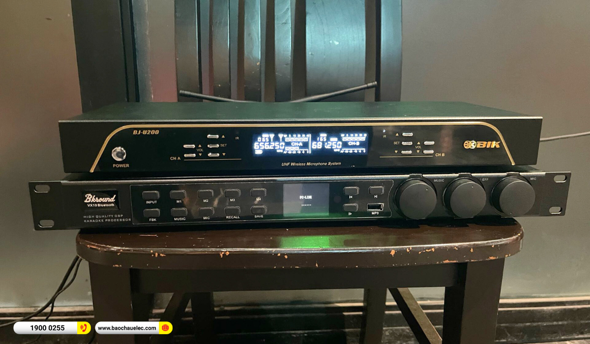 Để đảm bảo âm thanh trong trẻo, tách bạch giữa giọng hát và nhạc nền, nhà hàng sử dụng 1 chiếc vang số Bksound VX10. Bộ micro không dây BIK BJ-U200 là lựa chọn hoàn hảo để tăng sự tương tác với khách hàng, đồng thời phục vụ nhu cầu biểu diễn âm nhạc trực tiếp trong nhà hàng.