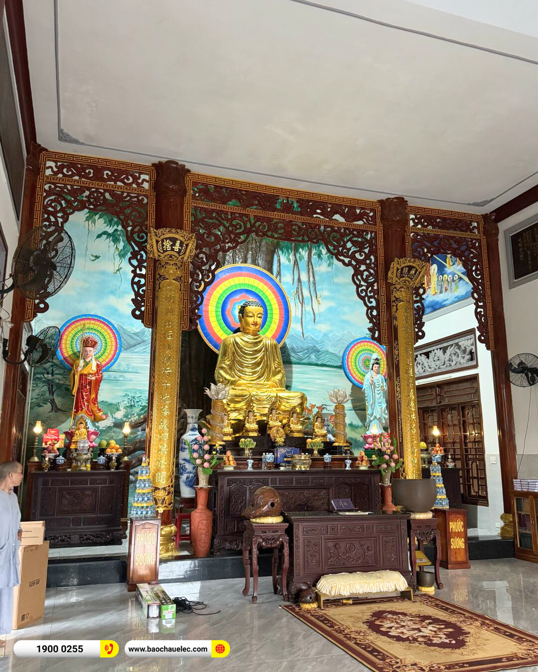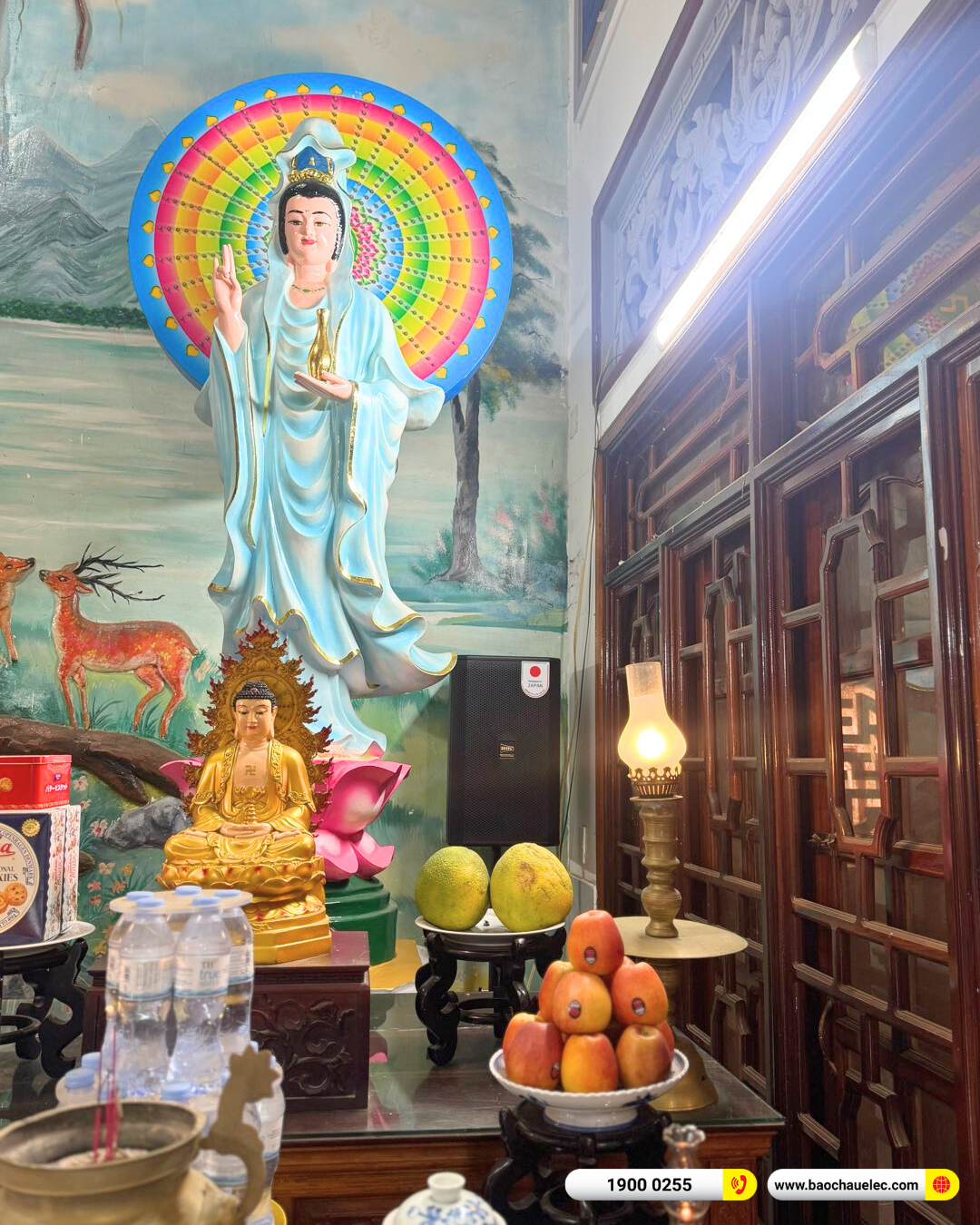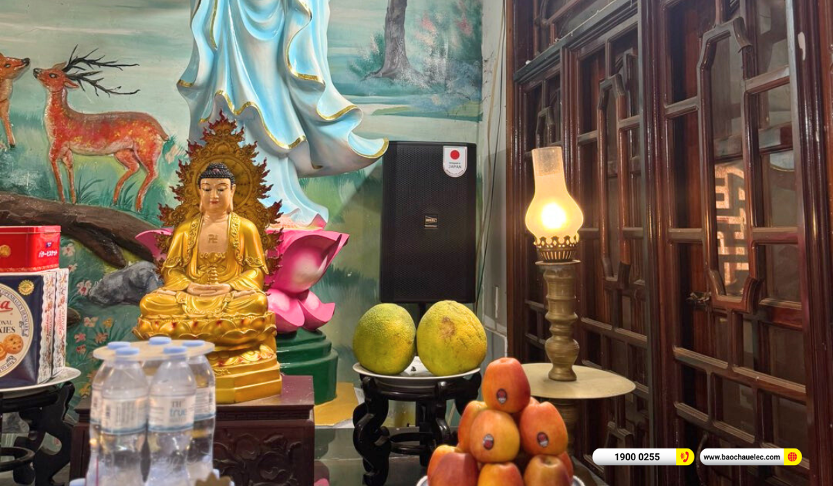 Để tối ưu khả năng truyền tải âm thanh, hệ thống còn được trang bị chân loa sắt 3 chân Boyong chắc chắn, dễ điều chỉnh, giúp âm thanh lan tỏa đều khắp chính điện. Toàn bộ cấu hình được thiết kế và lắp đặt tinh tế, mang đến giải pháp âm thanh hoàn hảo cho không gian tâm linh, vừa đảm bảo chất lượng kỹ thuật, vừa giữ trọn sự yên bình và trang nghiêm của chùa.