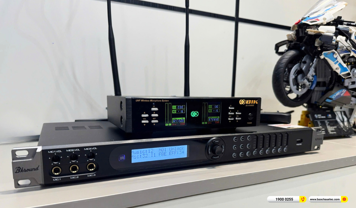 Bên cạnh đó, hệ thống còn được hoàn thiện với vang số Bksound KP600 cho khả năng xử lý echo - reverb mượt, chống hú tự động hiệu quả, cùngmicro không dây BIK BJ-U100II thu tiếng nhạy, bắt giọng tốt, hát nhẹ và không bị delay. Thiết kế các thiết bị hiện đại, chắc chắn, dễ bảo dưỡng giúp gia đình yên tâm sử dụng lâu dài.