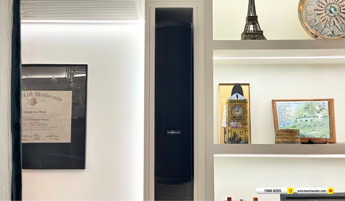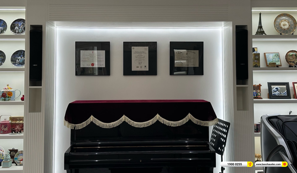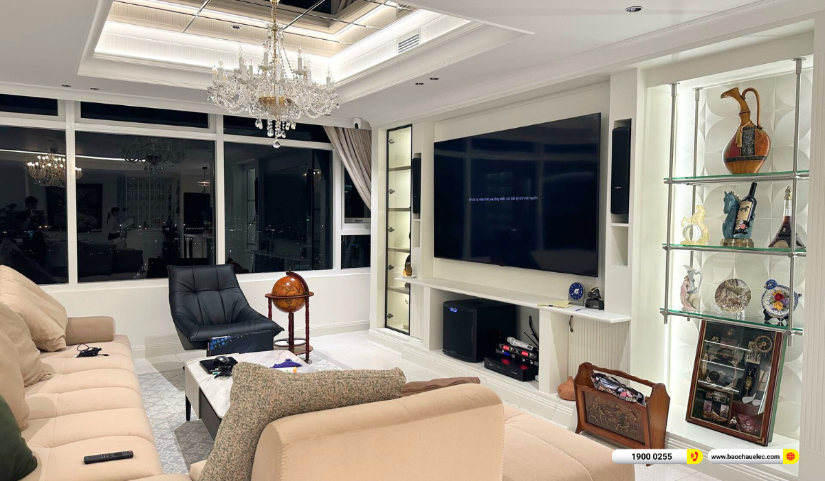 Dàn karaoke gắn tường Audiocenter không chỉ đáp ứng tốt nhu cầu giải trí gia đình mà còn tối ưu không gian sống, thể hiện rõ trình độ kỹ thuật và sự chuyên nghiệp của Bảo Châu Elec trong từng dự án thực tế.