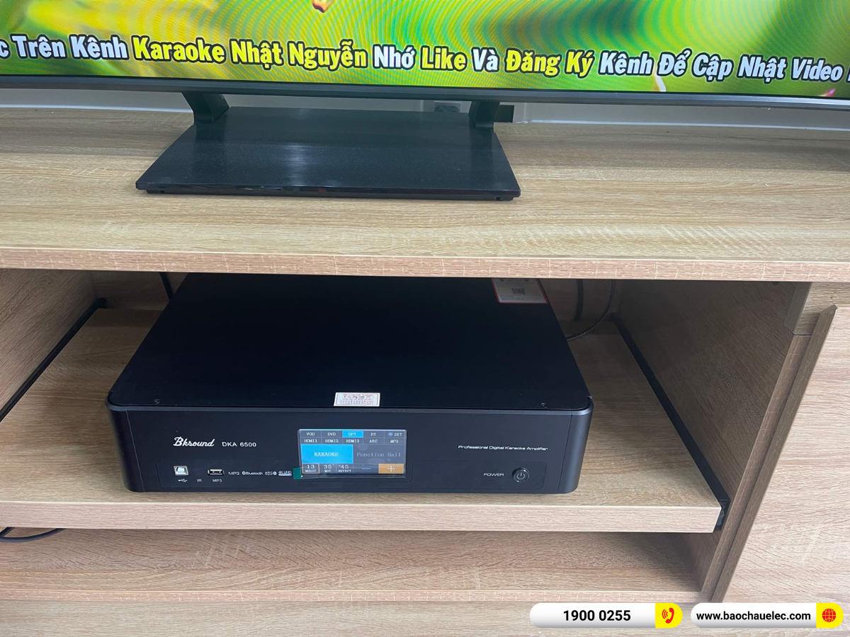 Đảm nhiệm nhiệm vụ khuếch đại là amply Bksound DKA 6500, mẫu amply karaoke số tích hợp 3 trong 1 gồm công suất - vang số - micro không dây. Amply cung cấp công suất lên tới 450W mỗi kênh (ở 8Ω), sử dụng mạch Class AB, có đầy đủ echo, reverb, chống hú, tinh chỉnh chi tiết giúp giọng hát dày, sáng và dễ vào tiếng. Khả năng kết nối đa dạng như Bluetooth, USB, HDMI ARC cũng giúp việc sử dụng hàng ngày trở nên tiện lợi.