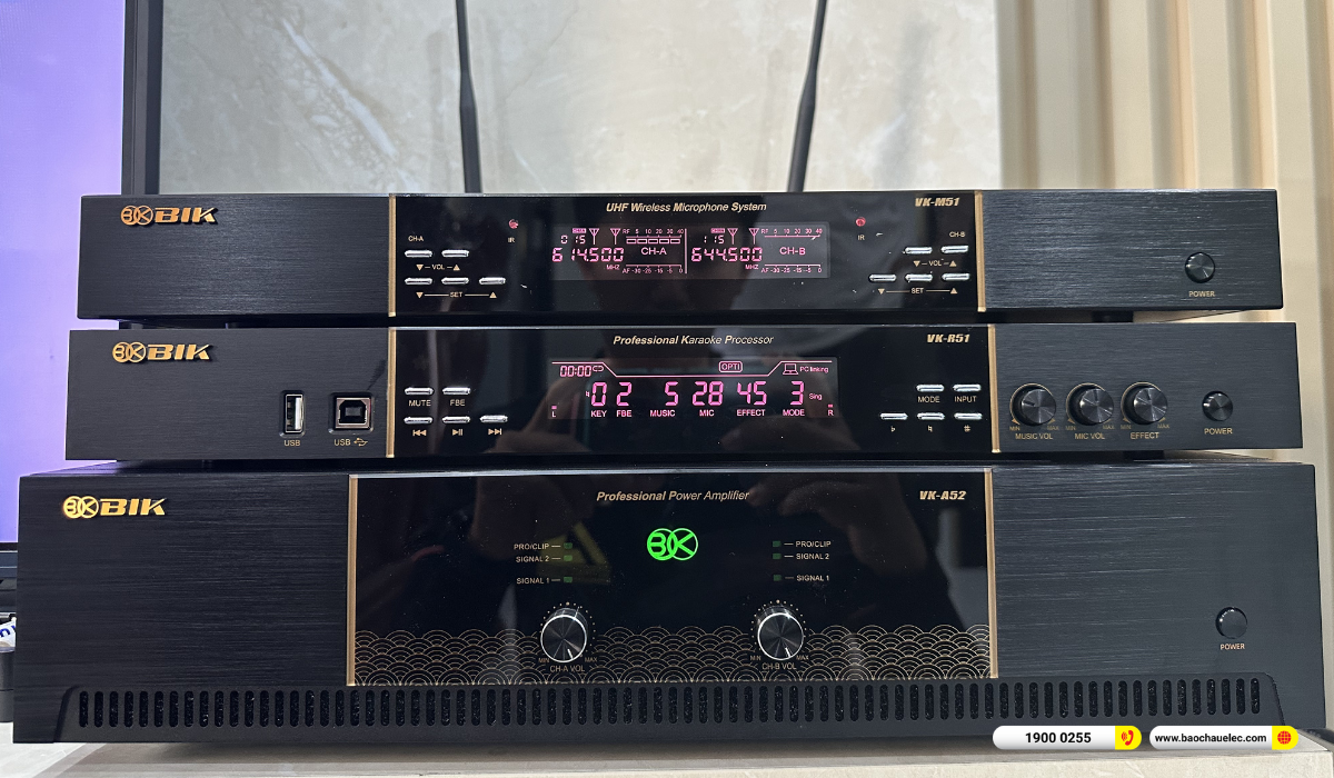 Với nhu cầu hát karaoke tại gia nhưng vẫn đảm bảo chất lượng âm thanh chuyên nghiệp, chú Hiền tại TP.HCM đã lựa chọn cấu hình dàn karaoke gia đình BIK hơn 40 triệu do Bảo Châu Elec tư vấn và lắp đặt. Hệ thống được phối ghép đồng bộ, tối ưu cho không gian phòng khách gia đình, mang lại trải nghiệm hát hay , dễ hát và chống hú tốt.