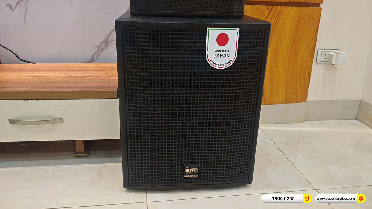 Bộ dàn karaoke của anh Phương tại Hà Nội được phối ghép từ các thiết bị đồng bộ của BIK, mang đến khả năng tái tạo âm thanh mạnh mẽ, rõ ràng và ổn định cho nhu cầu giải trí gia đình. Trung tâm của hệ thống là cặp loa karaoke Nhật BIK CS-625 là dòng loa karaoke được nhiều người yêu thích nhờ thiết kế 2 đường tiếng gồm bass 12 inch kết hợp treble họng còi, mang lại âm thanh rõ nét và đầy đủ ba dải trầm – trung – cao.