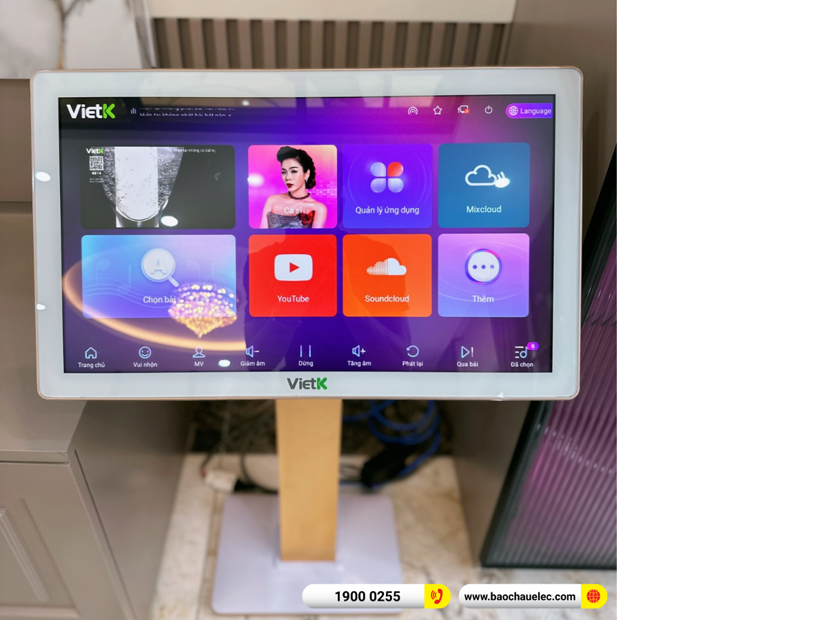 Hệ thống còn được tối ưu vận hành nhờ quản lý nguồn Bksound M8, giúp kiểm soát điện áp, bảo vệ thiết bị an toàn tuyệt đối. Và để hoàn thiện trải nghiệm giải trí tại gia, combo đầu VietK 4K Plus 4TB + màn VietK 22 inch cung cấp kho nhạc khổng lồ với giao diện mượt mà, dễ sử dụng, hỗ trợ hát karaoke chất lượng 4K sống động.