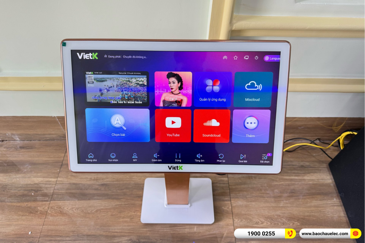 Bộ dàn còn được trang bị micro không dây BBS S290D, bắt sóng ổn định, tiếng mic sáng, nhẹ, hỗ trợ giọng hát rõ ràng và tự nhiên. Về nguồn nhạc và hiển thị, combo đầu VietK 4K Plus 4TB kết hợp màn hình VietK 22 inch mang đến kho bài hát phong phú, hình ảnh sắc nét, thao tác mượt mà – đáp ứng trọn vẹn nhu cầu giải trí hiện đại trong dịp Tết. Ngoài ra, quản lý nguồn Bksound MS8 giúp hệ thống vận hành an toàn, gọn gàng và chuyên nghiệp hơn.
