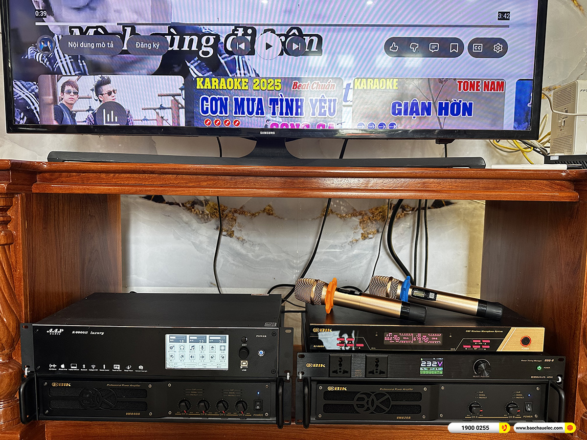 Cục đẩy công suất BIK VM640A và BIK VM620A cung cấp năng lượng ổn định, đảm bảo loa hoạt động hiệu quả, âm thanh phát ra chi tiết và mạnh mẽ ngay cả ở mức âm lượng cao. Vang số APP K9900II Luxury giúp cân bằng các dải âm, hiệu chỉnh giọng hát và loại bỏ hú rít, mang lại trải nghiệm karaoke mượt mà và chuyên nghiệp.