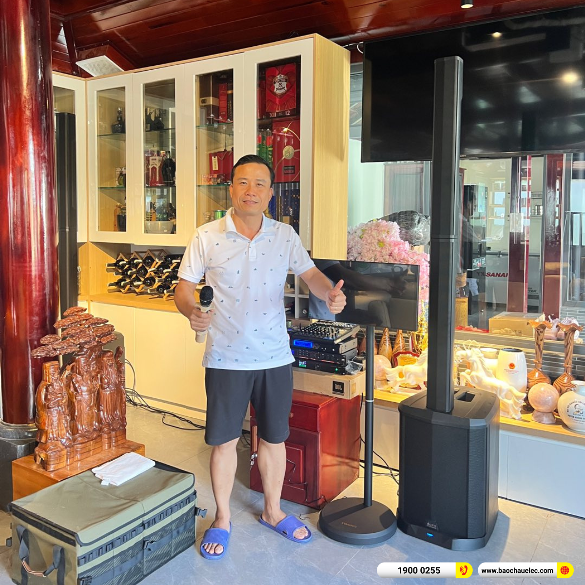 Sau khi hoàn thiện lắp đặt, kỹ thuật viên Bảo Châu Elec tiến hành cân chỉnh chi tiết theo nhu cầu sử dụng thực tế của anh Tùng, đảm bảo bộ dàn hoạt động ổn định, linh hoạt và mang lại trải nghiệm giải trí chất lượng cao ở mọi địa điểm.