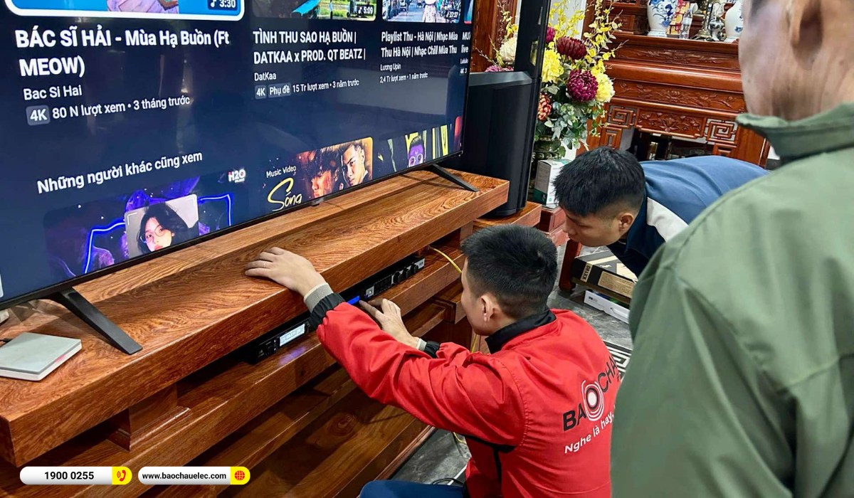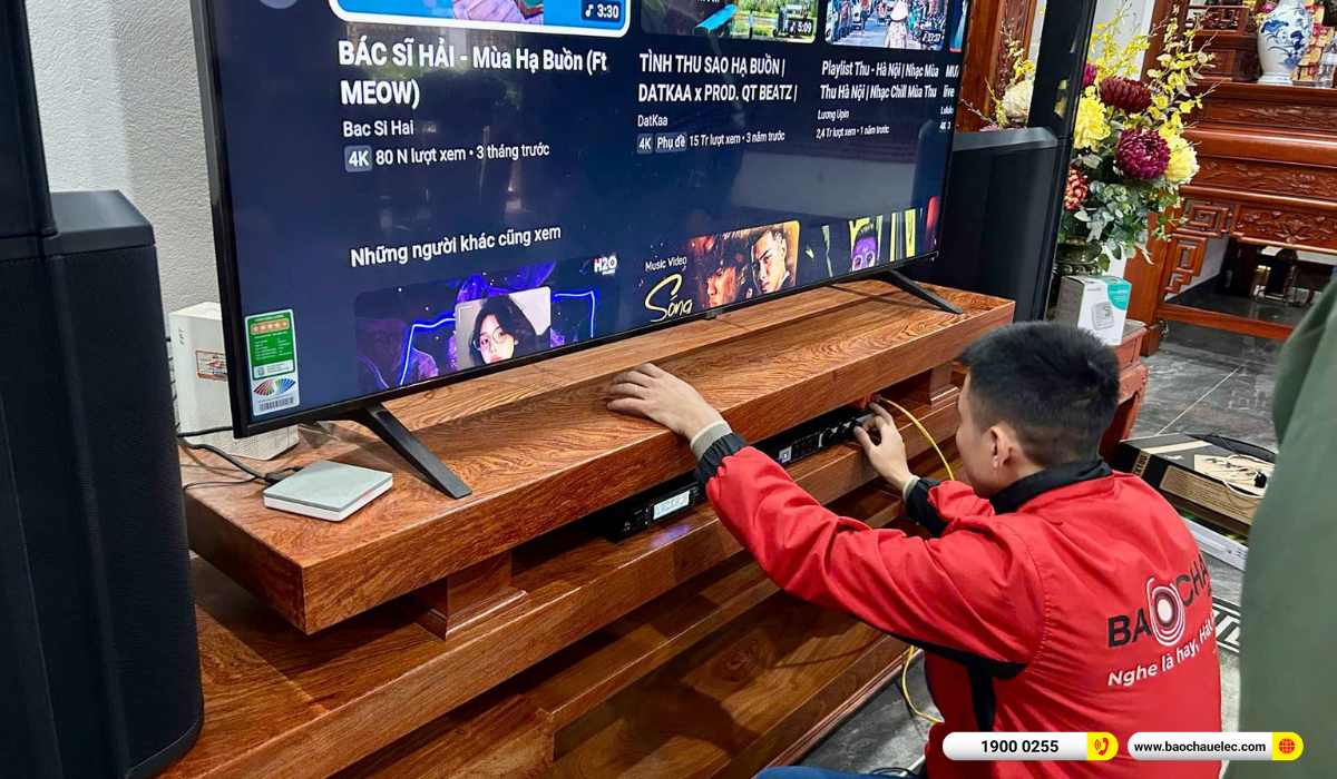 Trong quá trình lắp đặt tại Bắc Ninh, đội ngũ kỹ thuật đã khảo sát không gian thực tế, lắp đặt gọn gàng, căn chỉnh âm thanh chuẩn theo giọng hát và hướng dẫn anh Quang sử dụng, bảo quản hệ thống đúng cách.