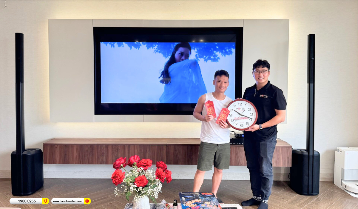 Hoàn thiện bộ dàn là micro không dây JBL VM300 với khả năng bắt giọng nhạy, hát lâu không mệt, sóng UHF ổn định. Sau khi được kỹ thuật viên Bảo Châu Elec setup và căn chỉnh chi tiết, hệ thống cho trải nghiệm thực tế cực kỳ ấn tượng: âm thanh sạch gọn, giọng hát nổi rõ, bass chắc không ù và setup nhanh gọn khi di chuyển. Anh Tuấn hoàn toàn hài lòng với chất lượng âm thanh lẫn sự tiện lợi của dàn karaoke di động Bose cao cấp này.