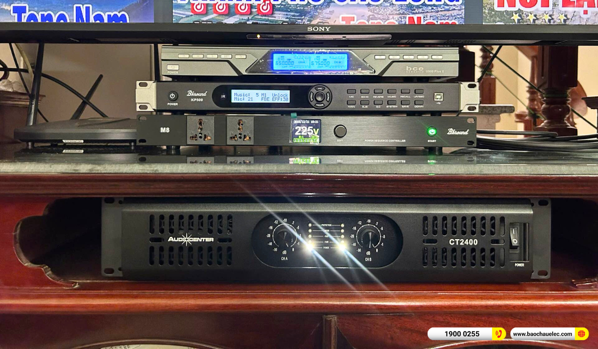 Audiocenter CT2400 là cục đẩy 2 kênh nổi tiếng về độ ổn định và khả năng kéo loa khỏe. Thiết bị cung cấp công suất dồi dào, giúp loa Domus hoạt động hết khả năng mà vẫn giữ âm thanh sạch, không méo tiếng. Vang số Bksound KP500 đóng vai trò xử lý tín hiệu trung tâm của hệ thống. Thiết bị cho phép căn chỉnh echo, reverb, delay linh hoạt, giúp giọng hát mượt mà, dày và rõ hơn.