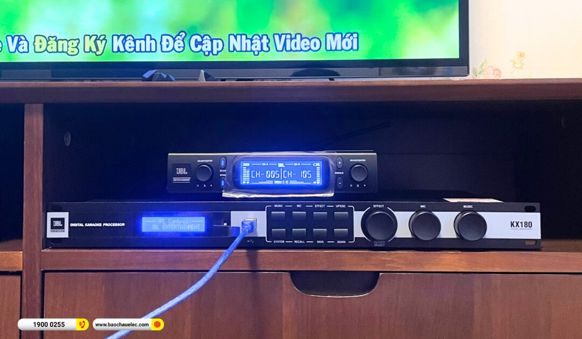 Kết hợp cùng cục đẩy công suất JBL V6 cho nguồn năng lượng ổn định, khuếch đại mạnh mẽ, đảm bảo loa luôn hoạt động tối ưu. Trong khi đó, vang số JBL KX180A giúp xử lý âm thanh mượt mà, chống hú tốt, tinh chỉnh giọng hát tự nhiên, cho cảm giác hát nhẹ và bay.