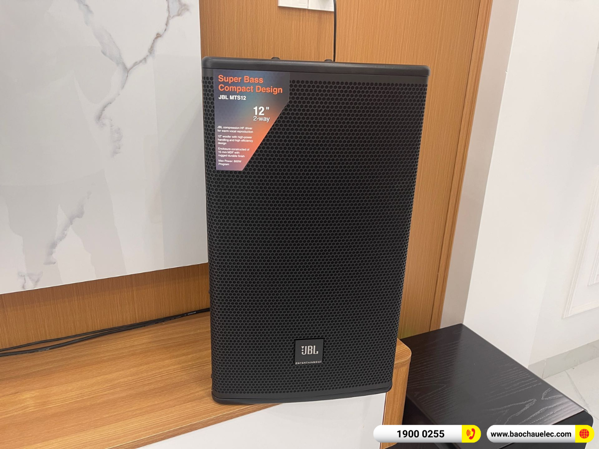Loa karaoke JBL MTS12 (2 chiếc): Dòng loa cao cấp đến từ thương hiệu âm thanh hàng đầu thế giới JBL (Mỹ). Sở hữu công suất mạnh mẽ, chất âm dày, trung thực và khả năng lan tỏa âm thanh cực tốt, phù hợp với không gian phòng từ 20-30m².