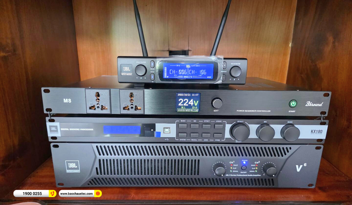 Vang số JBL KX180A xử lý âm thanh kỹ thuật số với DSP cao cấp, mang đến giọng hát mềm mại và trong trẻo. Tích hợp chống hú tự động giúp hát nhẹ, ổn định ở mọi dải âm. Dễ dàng tinh chỉnh qua phần mềm, phù hợp cho cả người mới lẫn kỹ thuật viên chuyên nghiệp. Bộ micro không dây JBL VM300 mang đến trải nghiệm hát thoải mái, không lo hú rít. Để đảm bảo hệ thống âm thanh hoạt động ổn định, Bksound M8 được tích hợp trong bộ dàn giúp phân phối nguồn điện an toàn, chống sốc điện và quá tải.