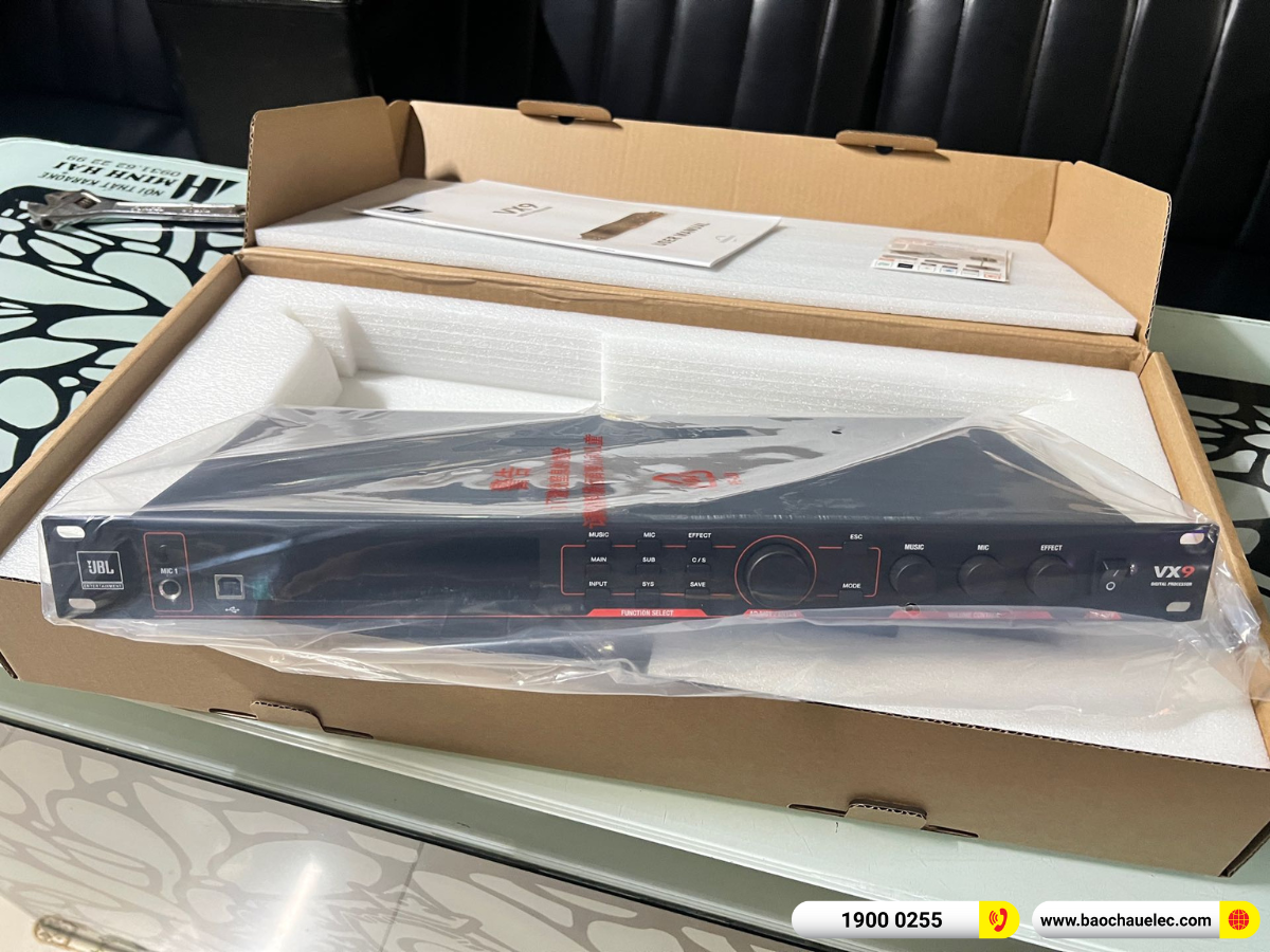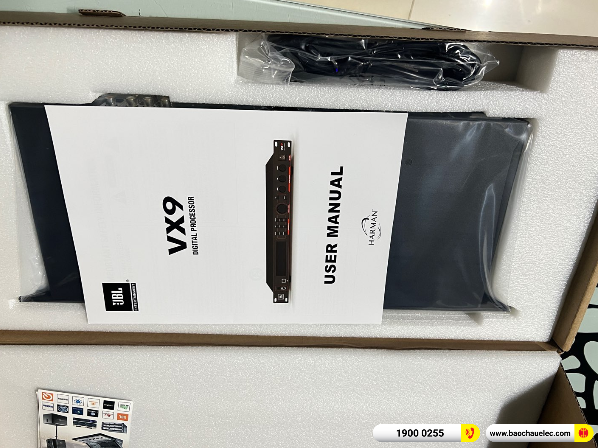Vang số JBL VX9 (1 chiếc): Thiết bị xử lý âm thanh kỹ thuật số thế hệ mới, cho phép cân chỉnh chuyên sâu từng dải tần giúp âm thanh tổng thể trở nên hài hòa, sống động. JBL VX9 hỗ trợ chống hú rít hiệu quả, nâng tầm trải nghiệm hát karaoke mượt mà, dễ hát và chuyên nghiệp hơn.