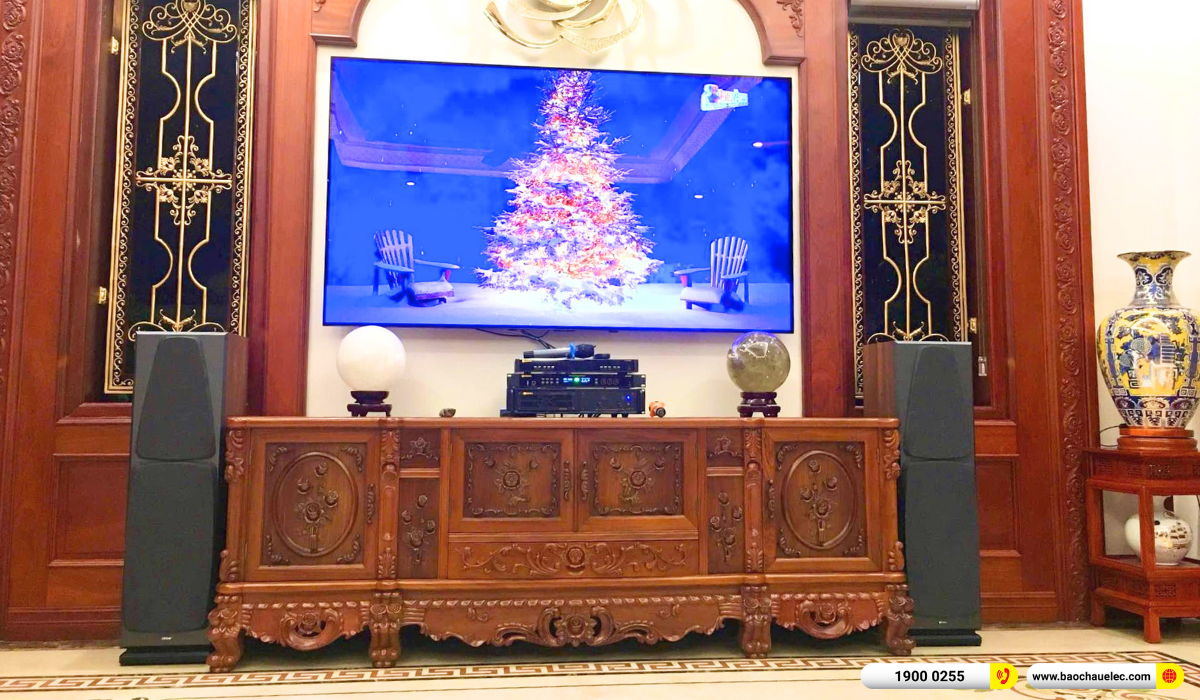 Đội ngũ kỹ thuật viên Bảo Châu Elec đã thực hiện lắp đặt tận nơi, cân chỉnh dàn âm thanh theo diện tích phòng và phong cách sử dụng của anh Chung.